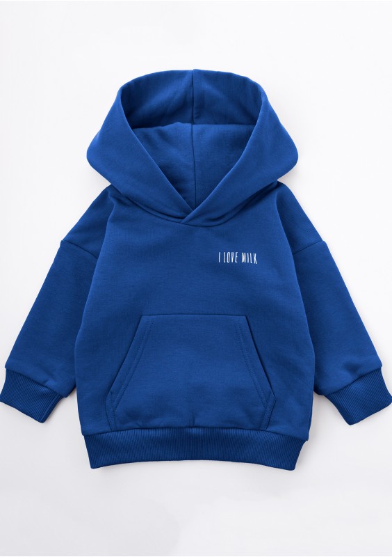 Przyjemnie miękka i wygodna bluza dziecięca z kapturem i kieszonką. Ubranko w cudnym odcieniu kobaltowym.