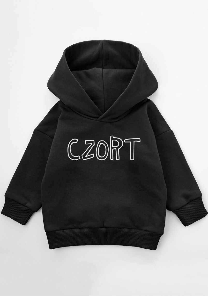 Śmieszna bluza dziecięca z nadrukiem, wykonana z miękkiej dzianiny bawełnianej. Fason z wygodnym kapturem i ściągaczami.