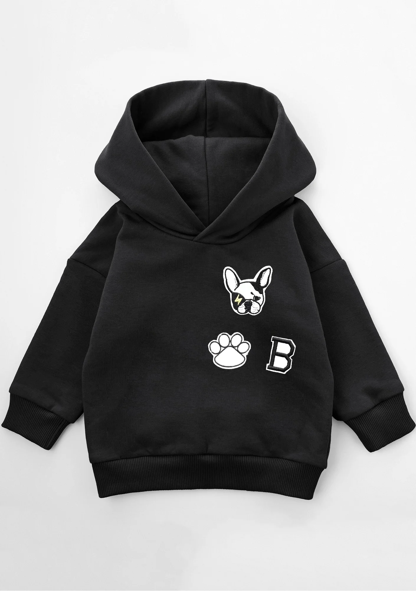 Bluza dziecięca z kapturem i naszywkami DOG Black