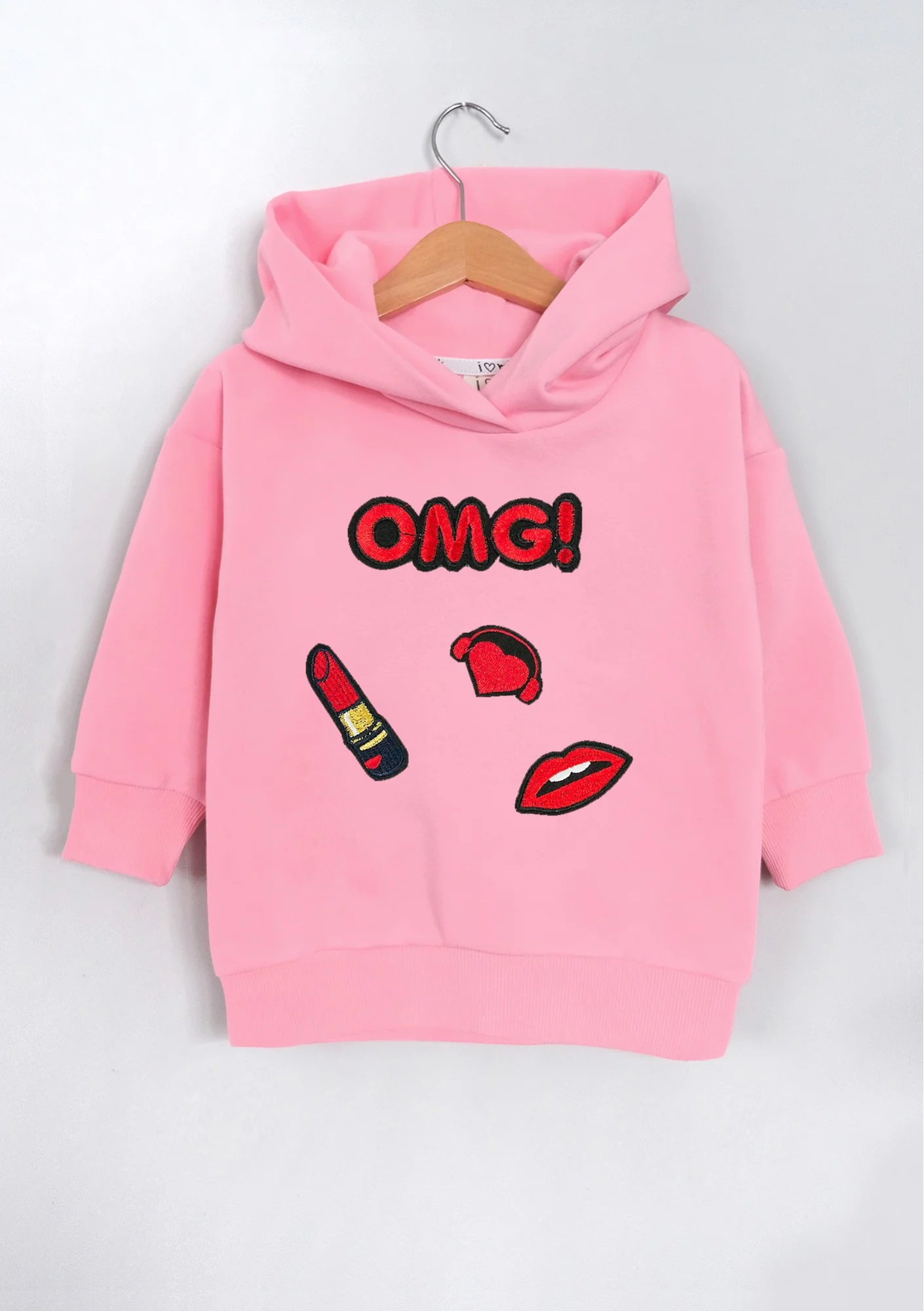 Bluza dziecięca z kapturem i naszywkami OMG Pink