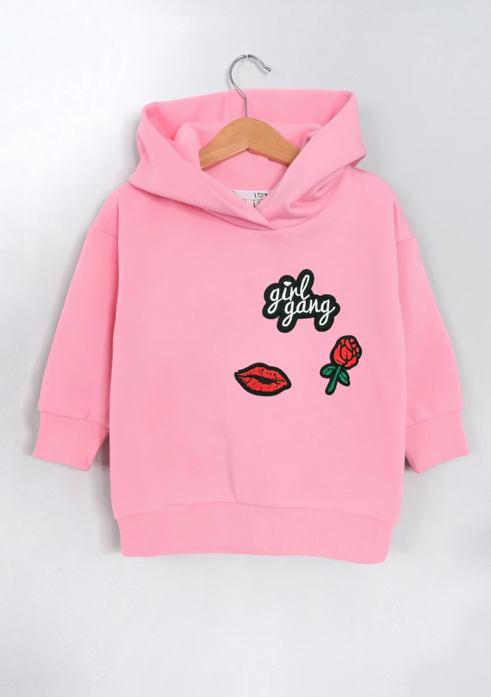 Bluza dziecięca z kapturem i naszywkami Girl gang Pink