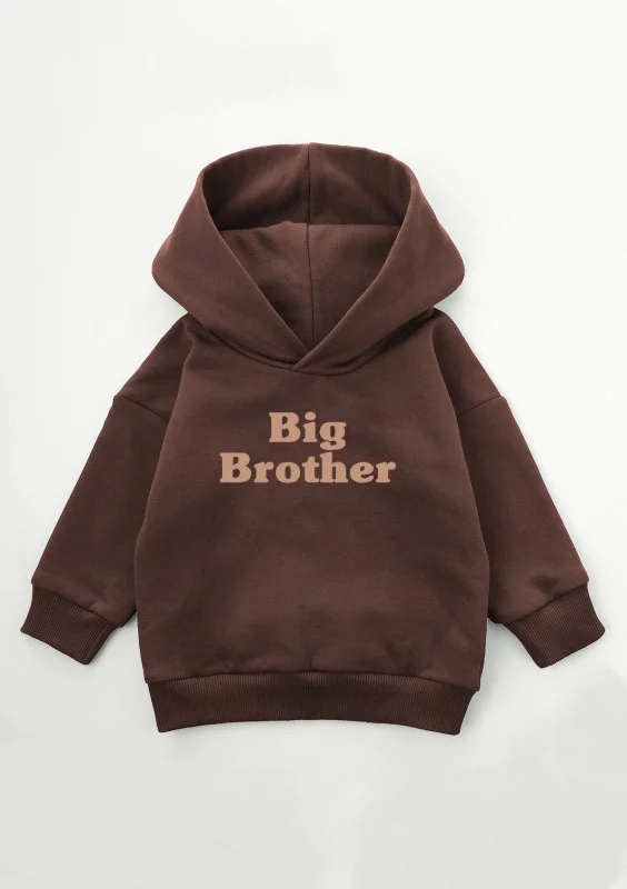 Brązowa bluza dla chłopca, który z dumą pełni rolę starszego brata. Uroczy model stanowi w pełni funkcjonalne i wygodne otulenie z kapturem, idealne do zabawy, nauki oraz odpoczynku.