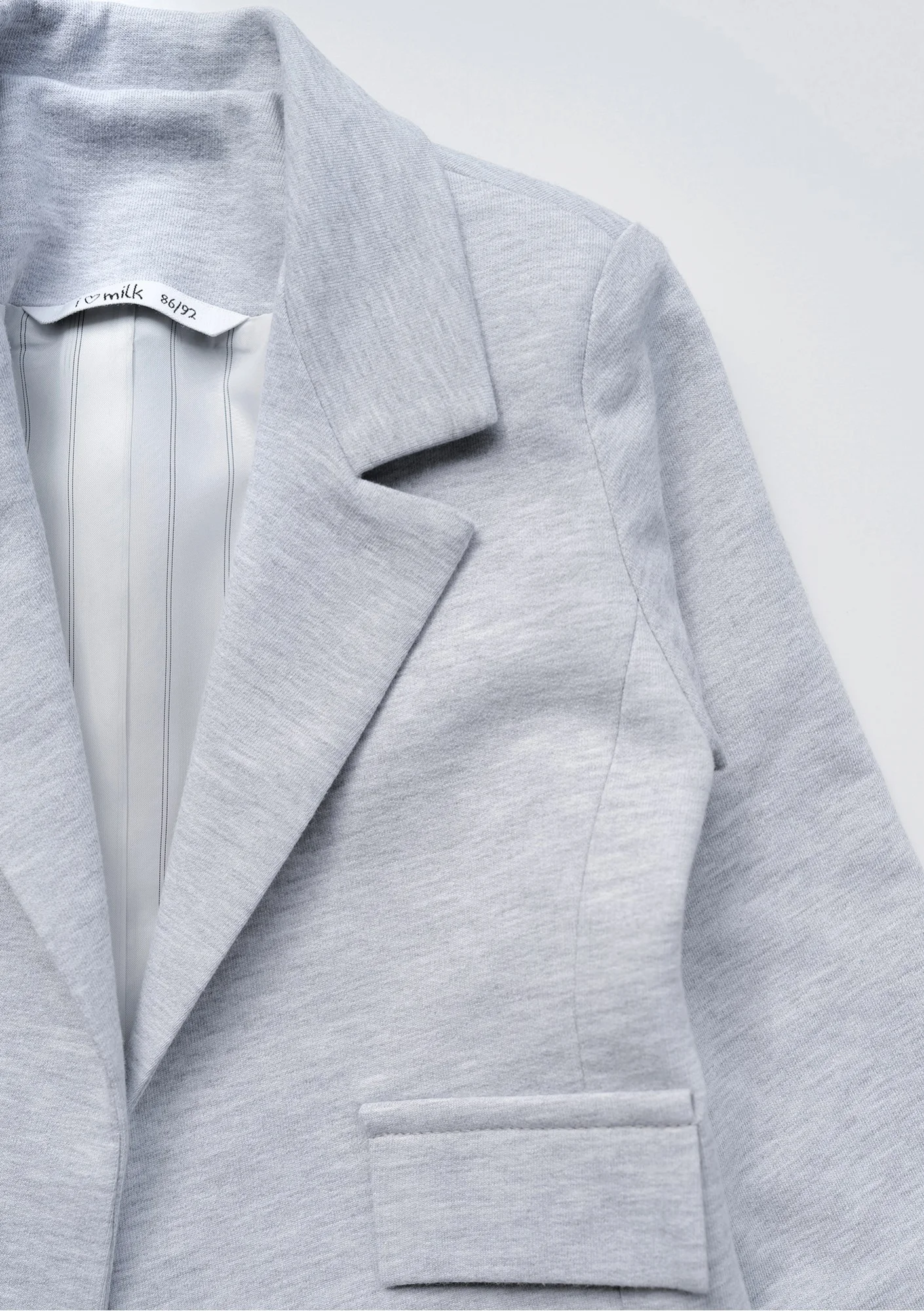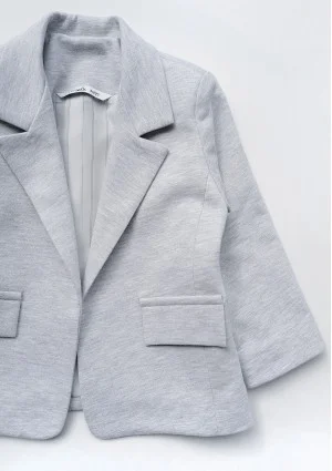 Szara marynarka dziecięca uszyta z bawełny stworzy uroczy zestaw wiosenny dla małych elegantów, jeśli połączysz ją ze spodniami od kompletu. Twoja pociecha lubi wyglądać jak mama? Możesz sprawić jej radość i wybrać dla was obu cudną, identyczną stylizację matchy matchy, ponieważ prezentowana marynarka jest dostępna również w wersji damskiej.