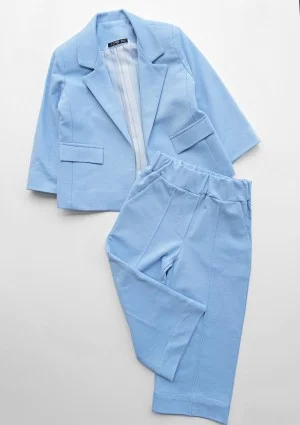 Jasnoniebieska marynarka dziecięca uszyta z bawełny stworzy uroczy zestaw wiosenny dla małych elegantów, jeśli połączysz ją ze spodniami od kompletu. Pasuje zarówno dziewczynkom, jak i chłopcom. Twoja pociecha lubi wyglądać jak mama? Możesz sprawić jej radość i wybrać dla was obu cudną, identyczną stylizację matchy matchy, ponieważ prezentowana marynarka jest dostępna również w wersji damskiej.