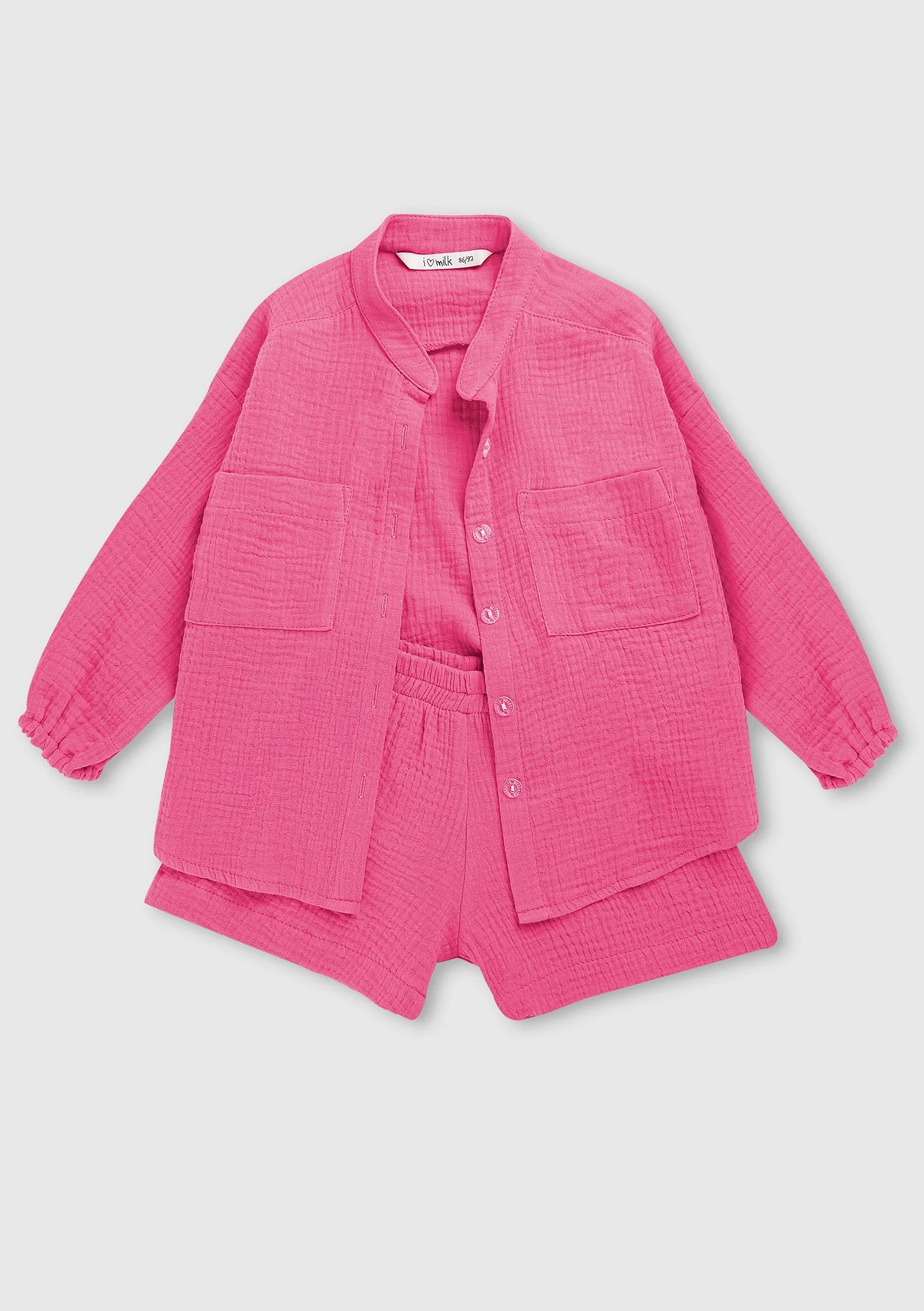 Komfortowo przewiewna koszula dziecięca w cudnym różu jest idealnym wyborem zarówno dla maluszków, jak i starszych juniorów. Wykonana z bawełnianej tkaniny w formie cienkiego muślinu, zapewnia doskonałą cyrkulację powietrza, co sprawia, że jest idealna na letnie dni. Zarówno najmłodsi, jak i starsi dzieci będą czuć się w niej wygodnie i swobodnie. Dodatkowo, delikatny różowy kolor dodaje uroku i sprawia, że koszula będzie świetnym dodatkiem do letniej garderoby.