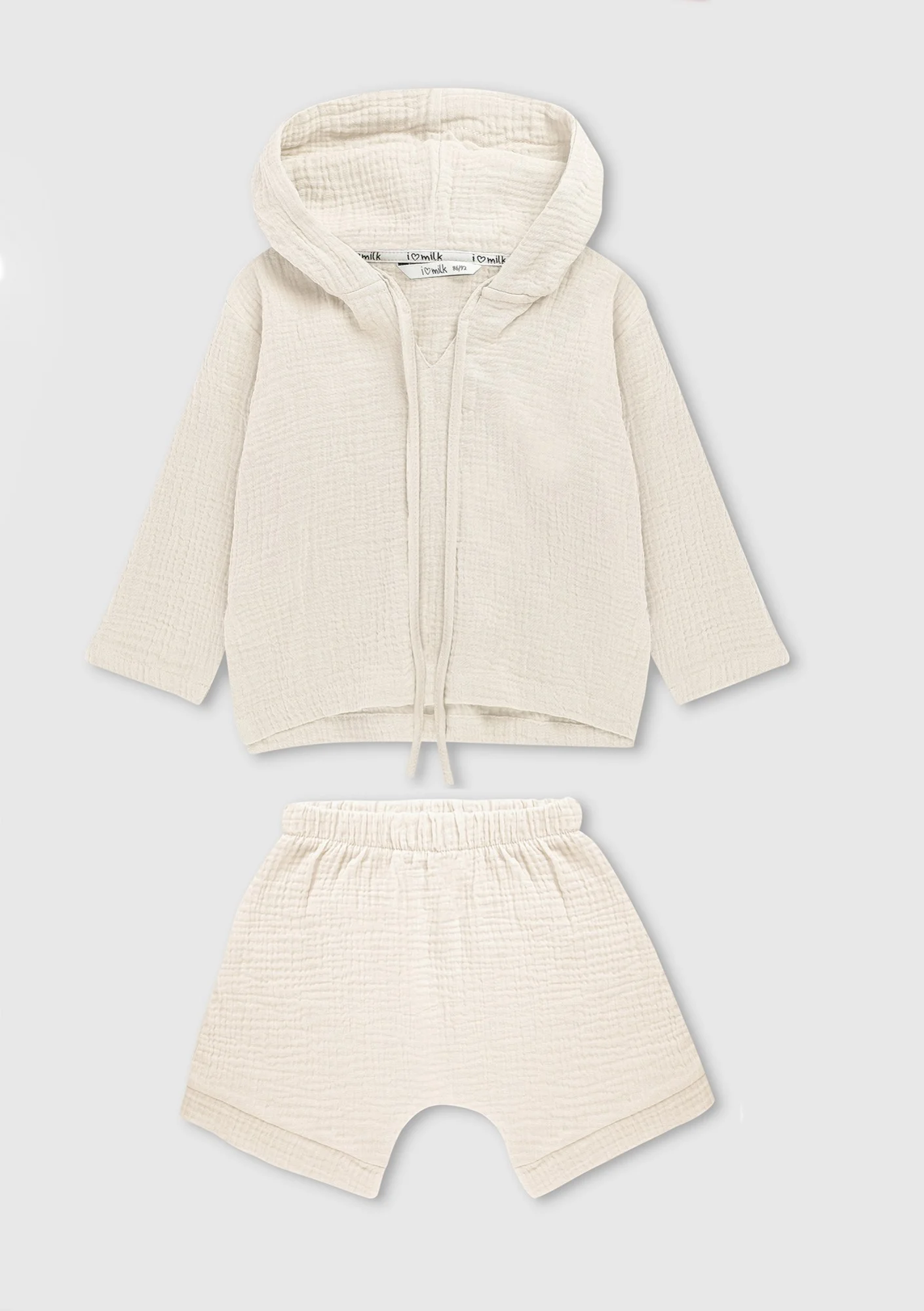 Bluza dziecięca z kapturem z muślinu Kremowa