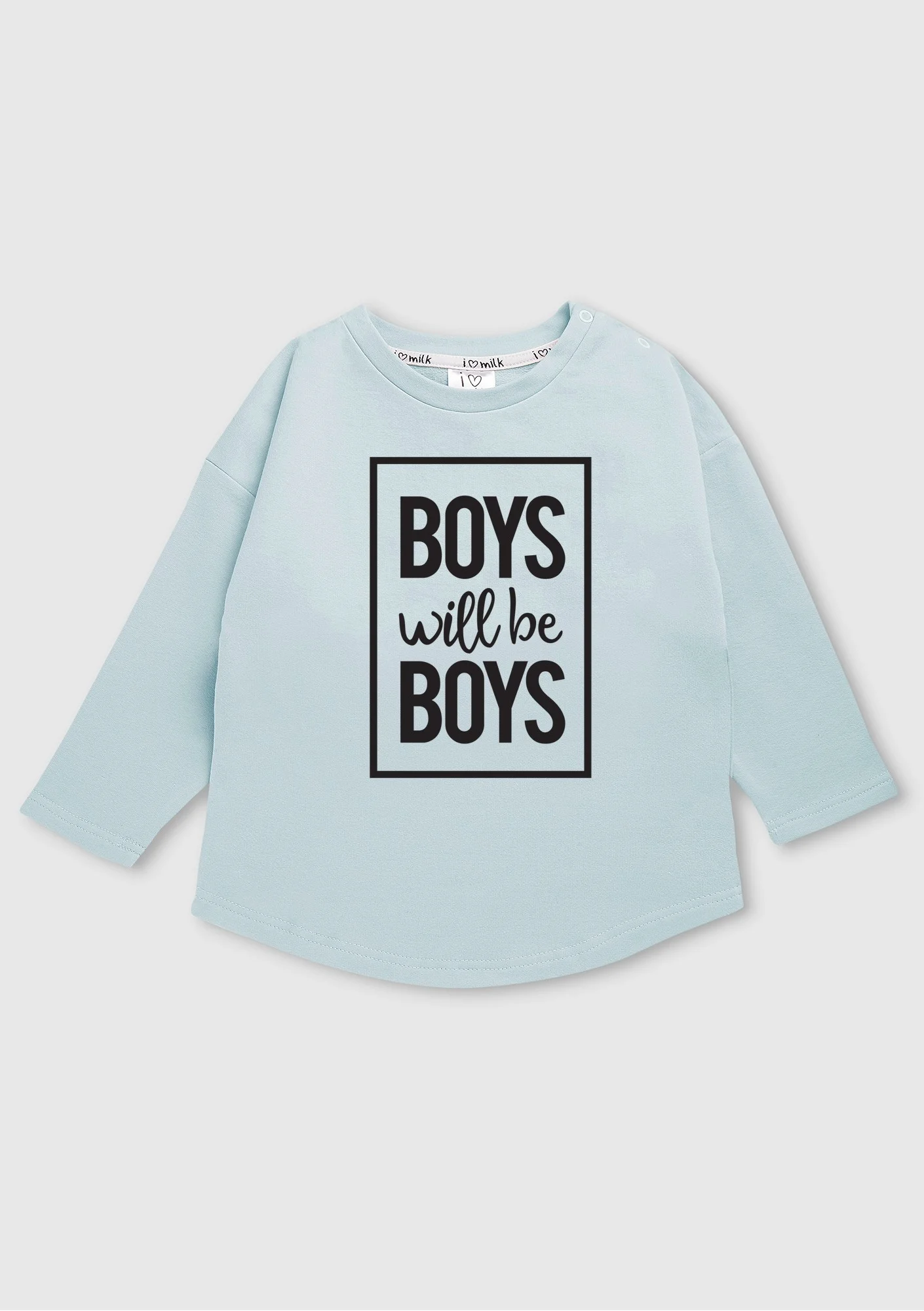 Nadruk "Boys will be boys" (,,Chłopcy jak to chłopcy").