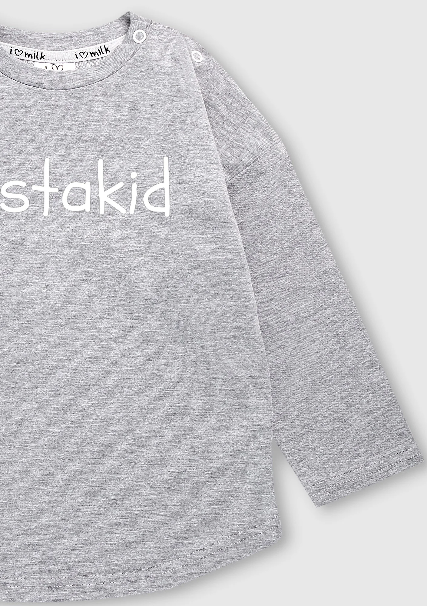 Szara bluza dla dzieci z nadrukiem "#instakid" to ubranie łączące nowoczesny design z wielofunkcyjnością. Wykonana z wysokiej jakości bawełny, gwarantuje komfort noszenia przez cały rok. Jej wyjątkowy charakter przyciągnie uwagę małych modeli i modelek.