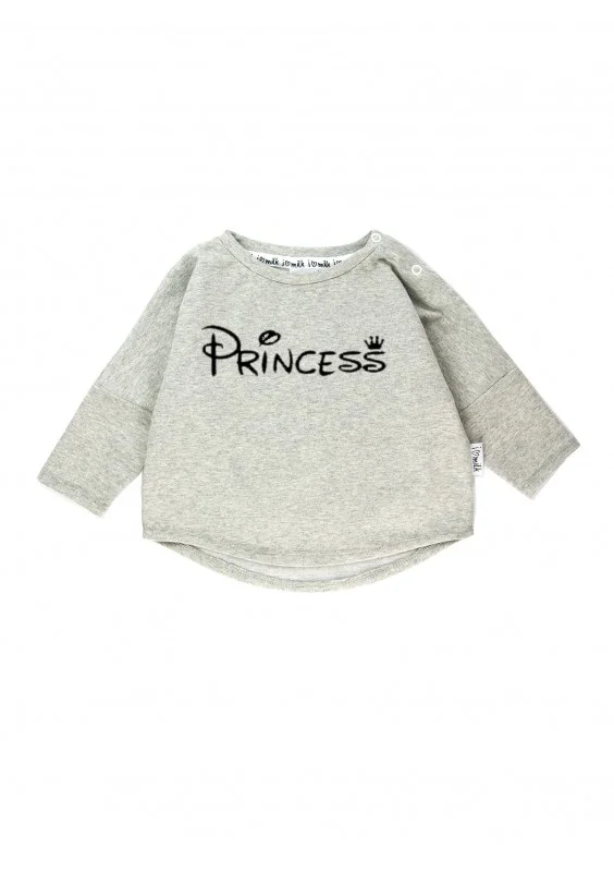 Szara bluza dla dziewczynek uszyta z miękkiej i naturalnej dzianiny bawełnianej. Ubranko z napisem "princess", idealne dla małej księżniczki.