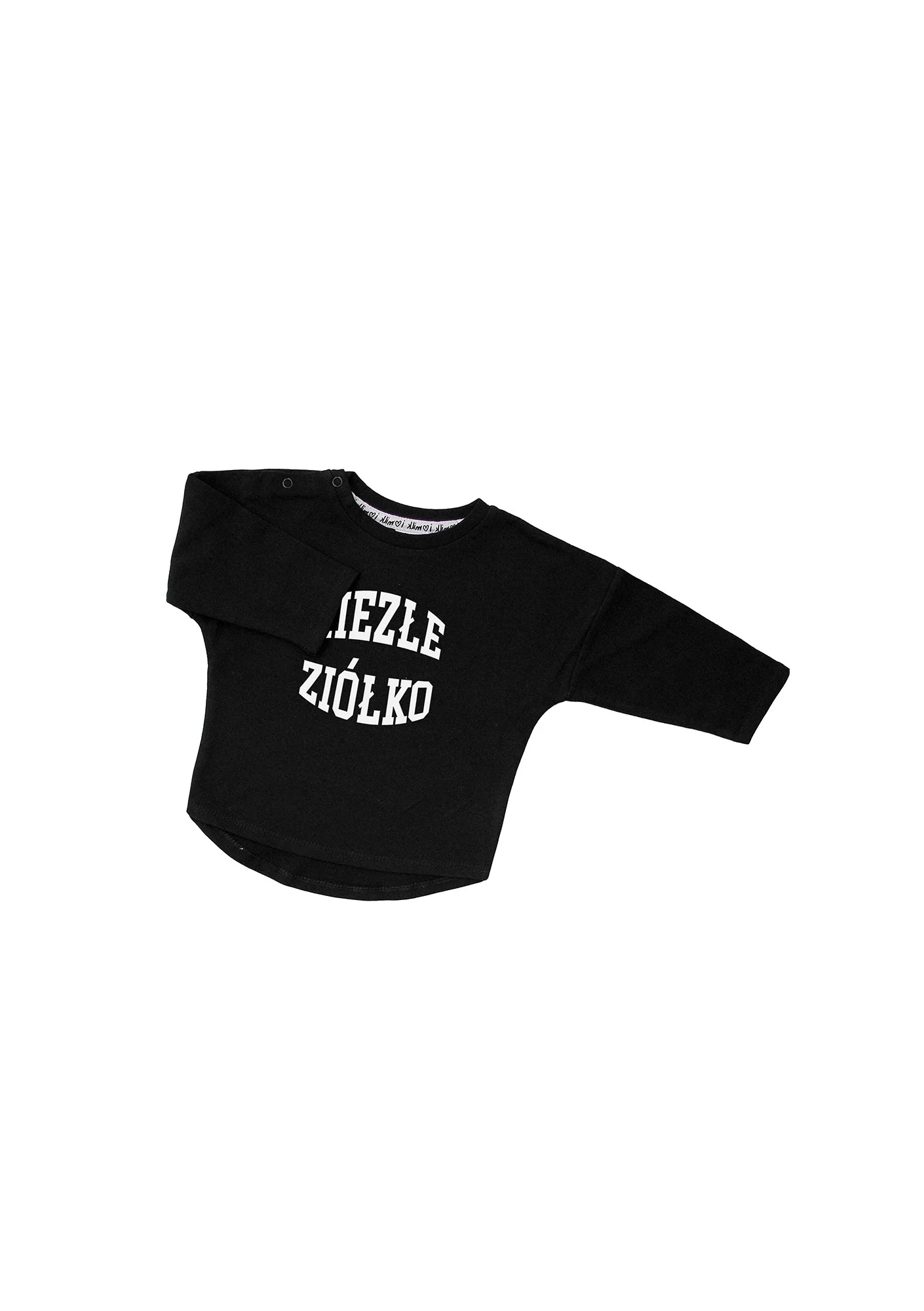 Modna bluza dla dziecka z napisem „NIEZŁE ZIÓŁKO” dostępna jest w aż czterech wariantach kolorystycznych. Szary melanż, czarny, pudrowy róż oraz błękit świetnie wpisują się w dziecięce stylizacje, pozwalając by bluza była elementem szafy chłopców i dziewczynek. Model powstaje w rozmiarach dla niemowląt (50/56 – 86/92) oraz kilkuletnich dzieci (98/104 – 134/140). Zarówno nadruk, jak i kolor tkaniny dobrze znoszą pranie, zachowując swój pierwotny wygląd. Prezentowana bluza dziecięca od I LOVE MILK zaprojektowana została w Polsce.