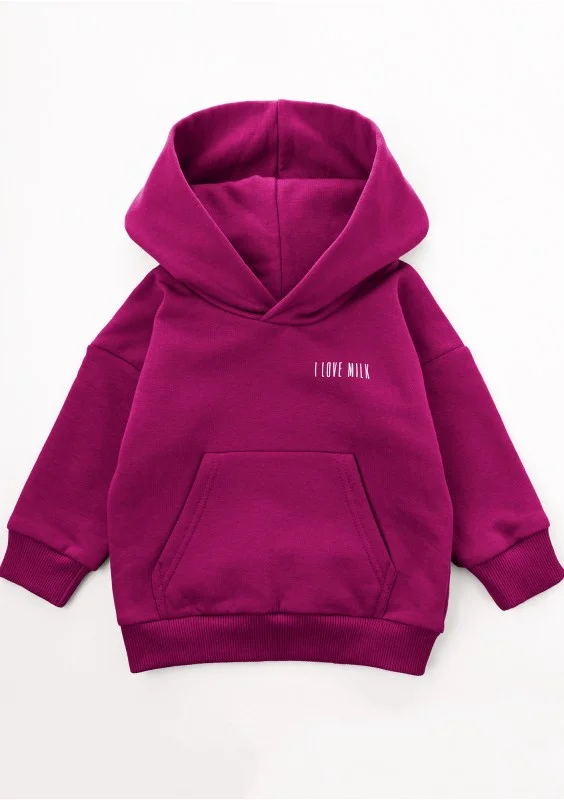 Bluza dziecięca z wygodnym kapturem oczaruje dzieciaki ślicznym, jagodowym kolorem. Zapewni pełen komfort i swobodę, otulając miękką dzianiną bawełnianą.