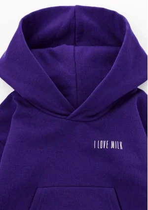 Bluza kangurka dziecięca w kolorze fioletowym stworzy cudny komplet dziecięcy na jesienno - zimową porę. Dodaj do koszyka dedykowane spodnie i spraw maluchowi wygodną, sportową stylizację na codzienne okazje. W dresach dziecięcych I Love Milk wszystkie szkraby mogą swobodnie się bawić, psocić i odpoczywać! To także optymalny ubiór do przedszkola i szkoły.
