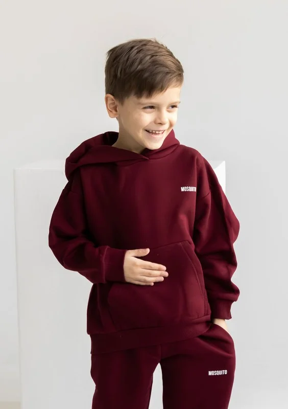 Bawełniane bluzy dziecięce Mosquito to miniaturki naszych damskich bestsellerów. Stylizacją matchy matchy możecie celebrować rodzinne okazje i wspólne chwile. Wygodny dres zachęci do zabawy, spaceru w parku lub leniuchowania na kanapie, ważne że będziecie razem! Bordowa bluza dziecięca z kapturem posiada uniwersalny fason, który sprawdzi się zarówno u najmłodszych maluchów, jak i starszaków, które potrzebują wygodnej odzieży do szkoły.