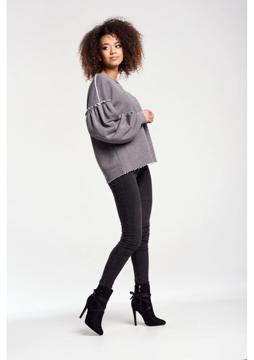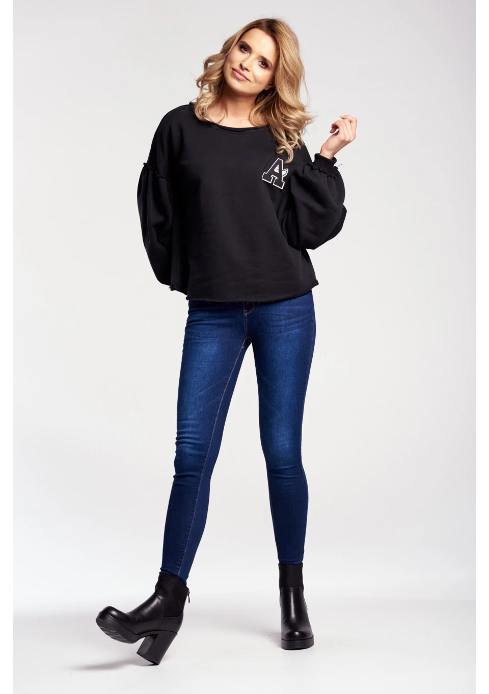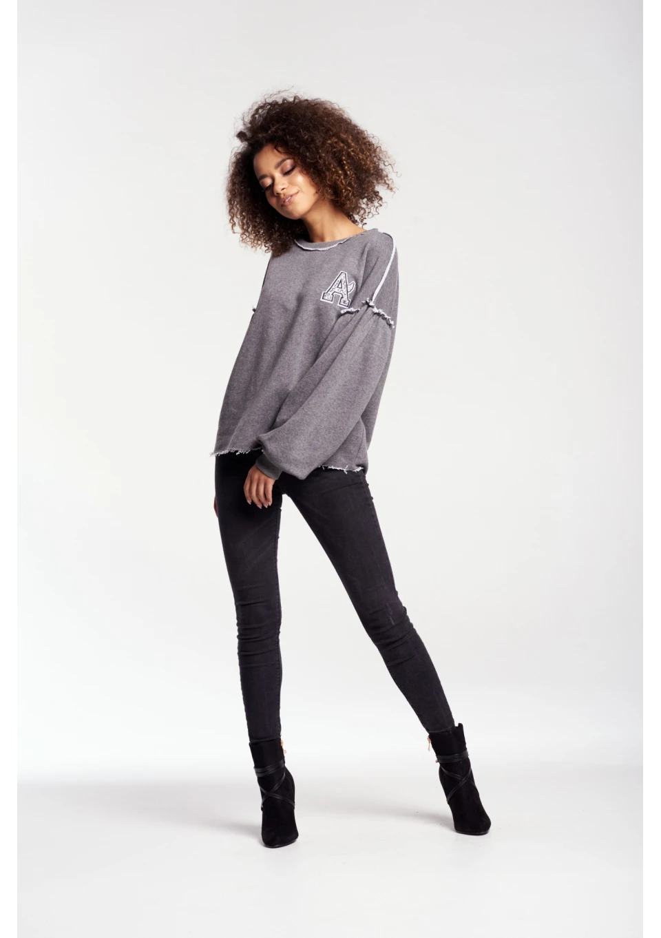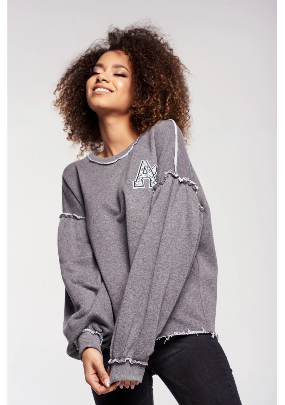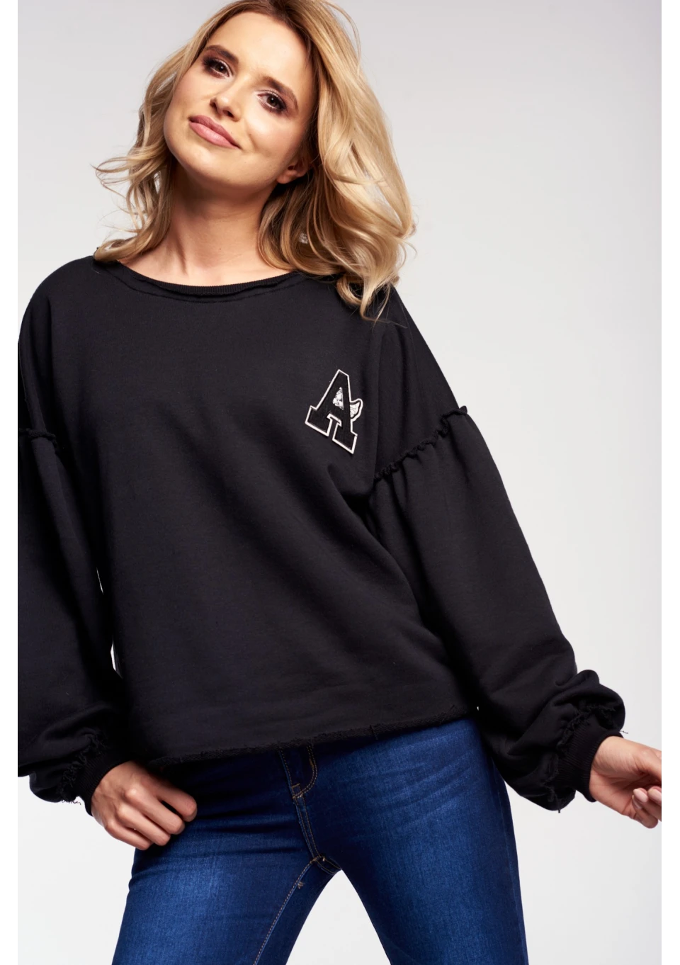 BLUZA Z SUROWYM WYKOŃCZENIEM I NASZYWKĄ