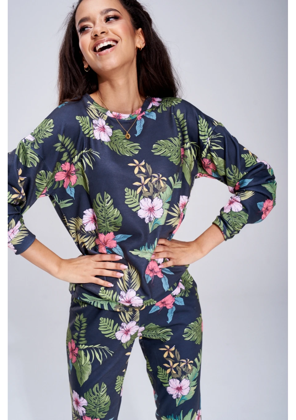 BLUZA BLACK ALOHA FLOWER ILM