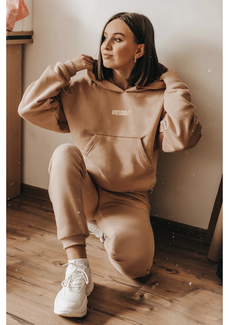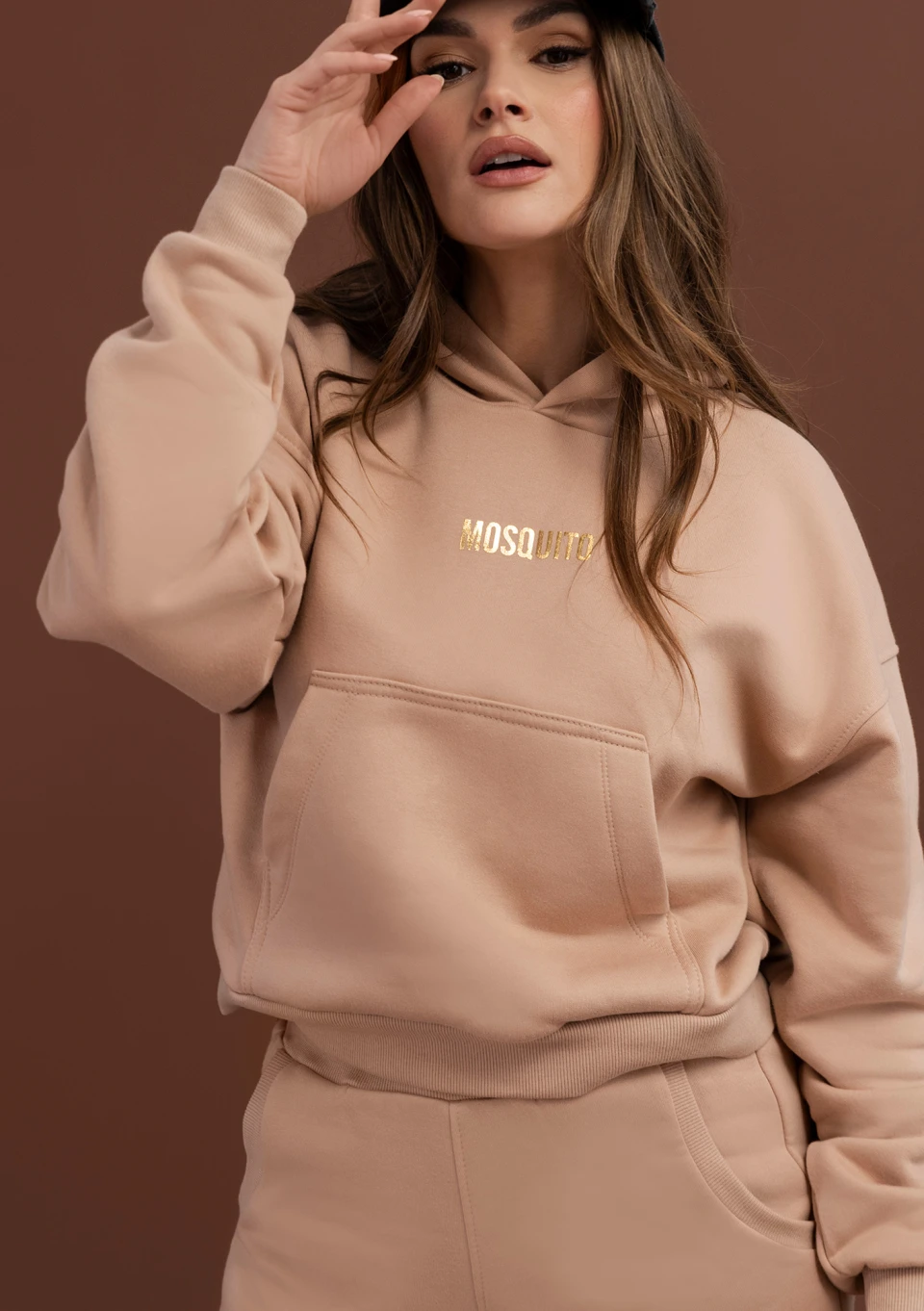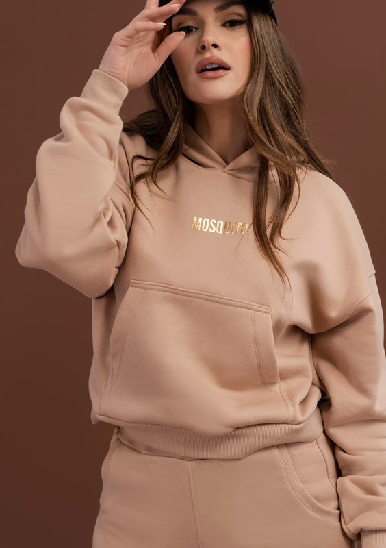 Niedościgniony bestseller! Beżowa bluza z kapturem zachwyci Cię pięknym odcieniem jasnego beżu, a także krótkim fasonem podkreślającym sylwetkę. Model stylowo ozdobiony mieniącym się logiem.