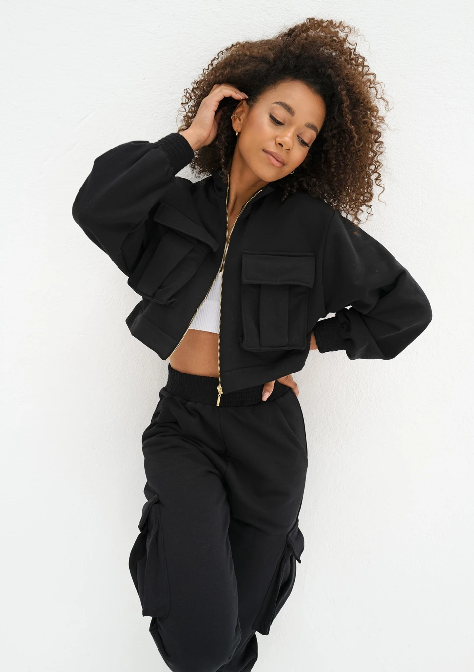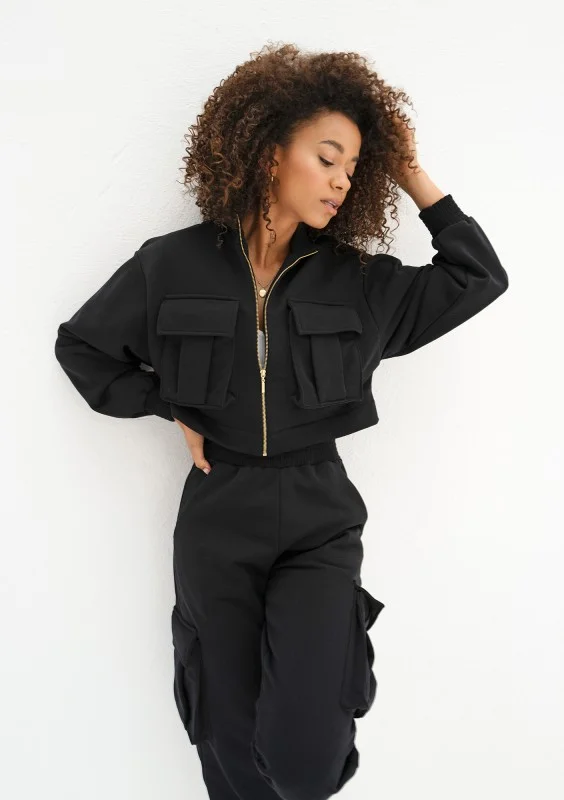 Loxy - Rozpinana krótka bluza cargo Czarna