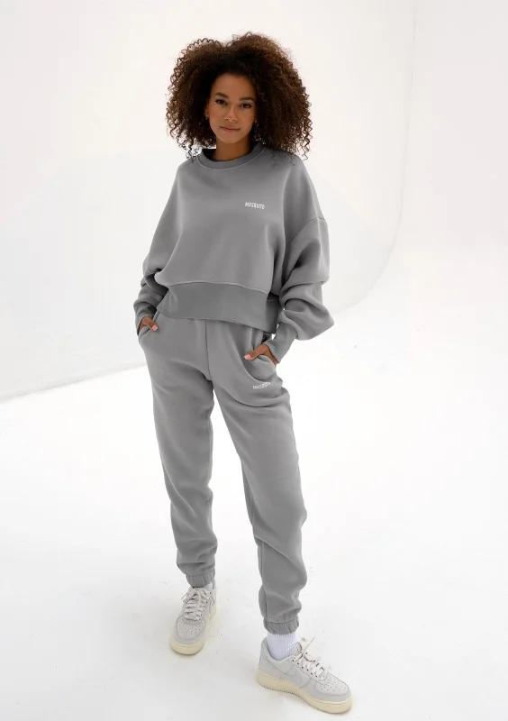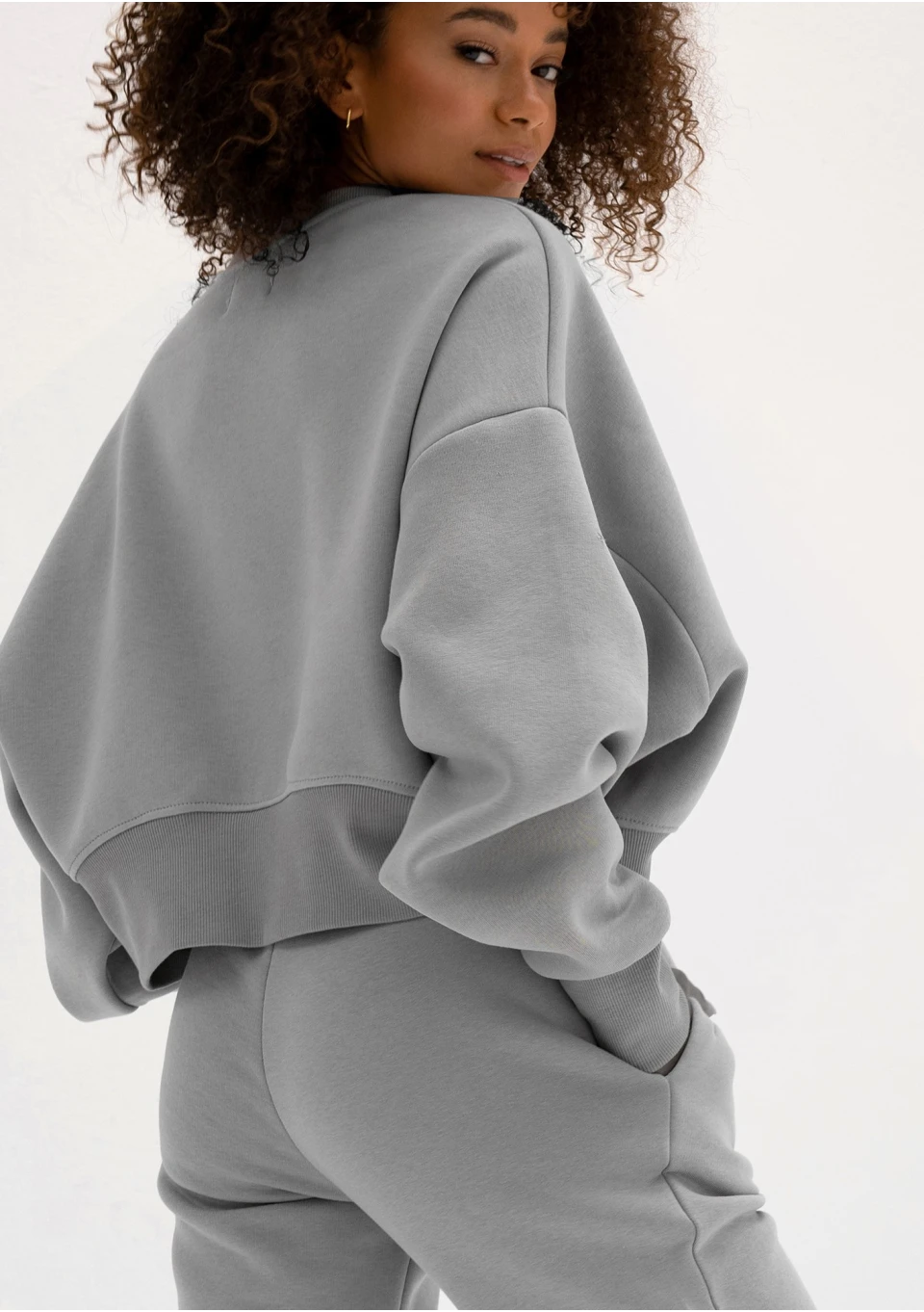 Modna bluza damska oversize w gładkim, szarym kolorze. Spośród bluz Mosquito ten model zapewni Ci największą swobodę. Został wykończony luźnym i szerokim ściągaczem. Dzięki niemu fason świetnie układa się na każdym typie sylwetki! Bluza stylowo łączy się ze spodniami Pure. Stwórz modny komplet dresowy w uniwersalnym, szarym kolorze i ciesz się szybką stylizacją na codzienne wyjścia.
