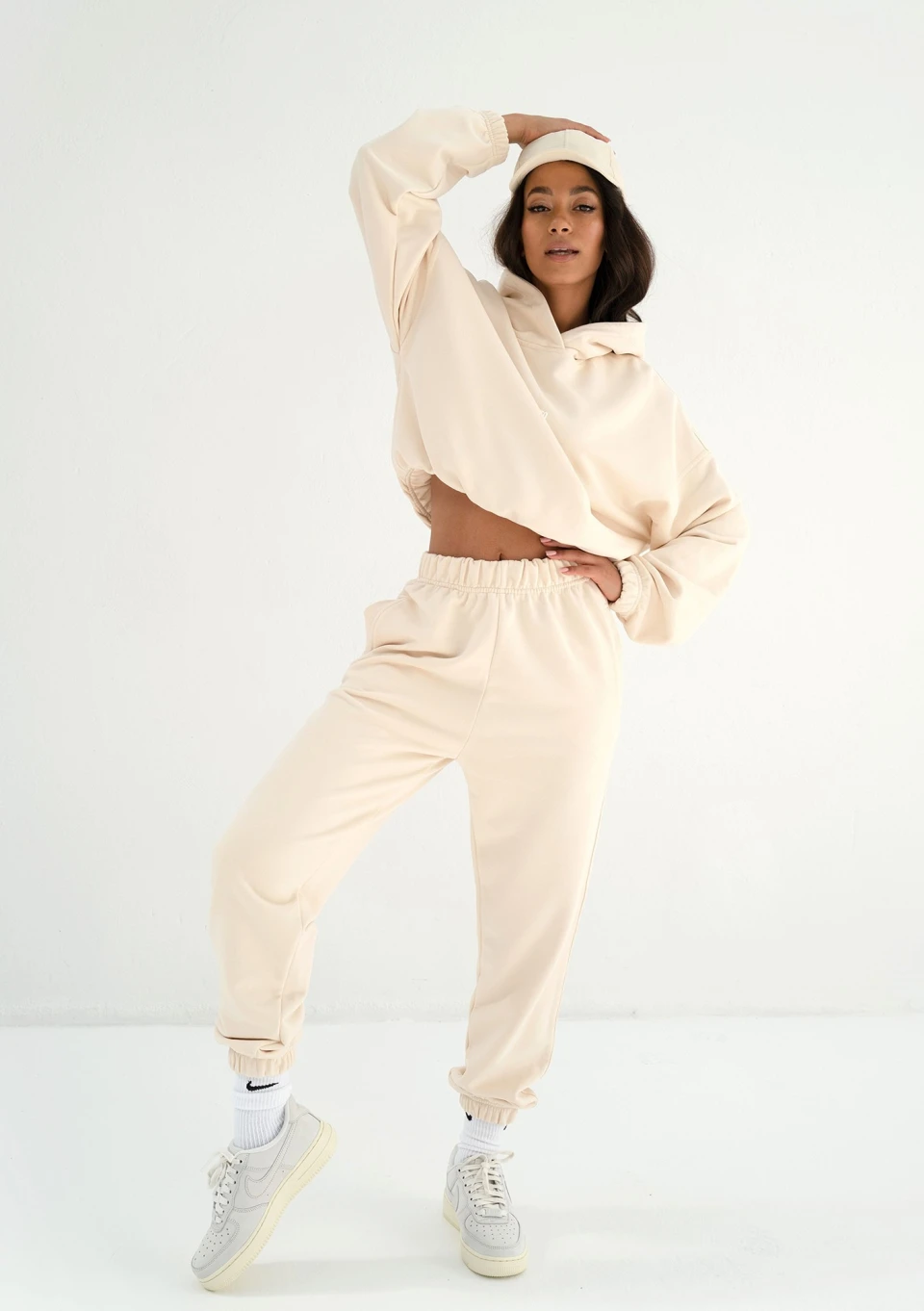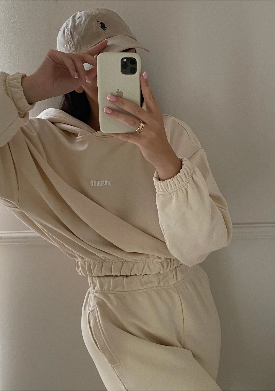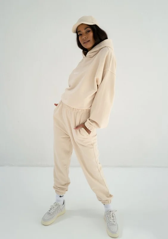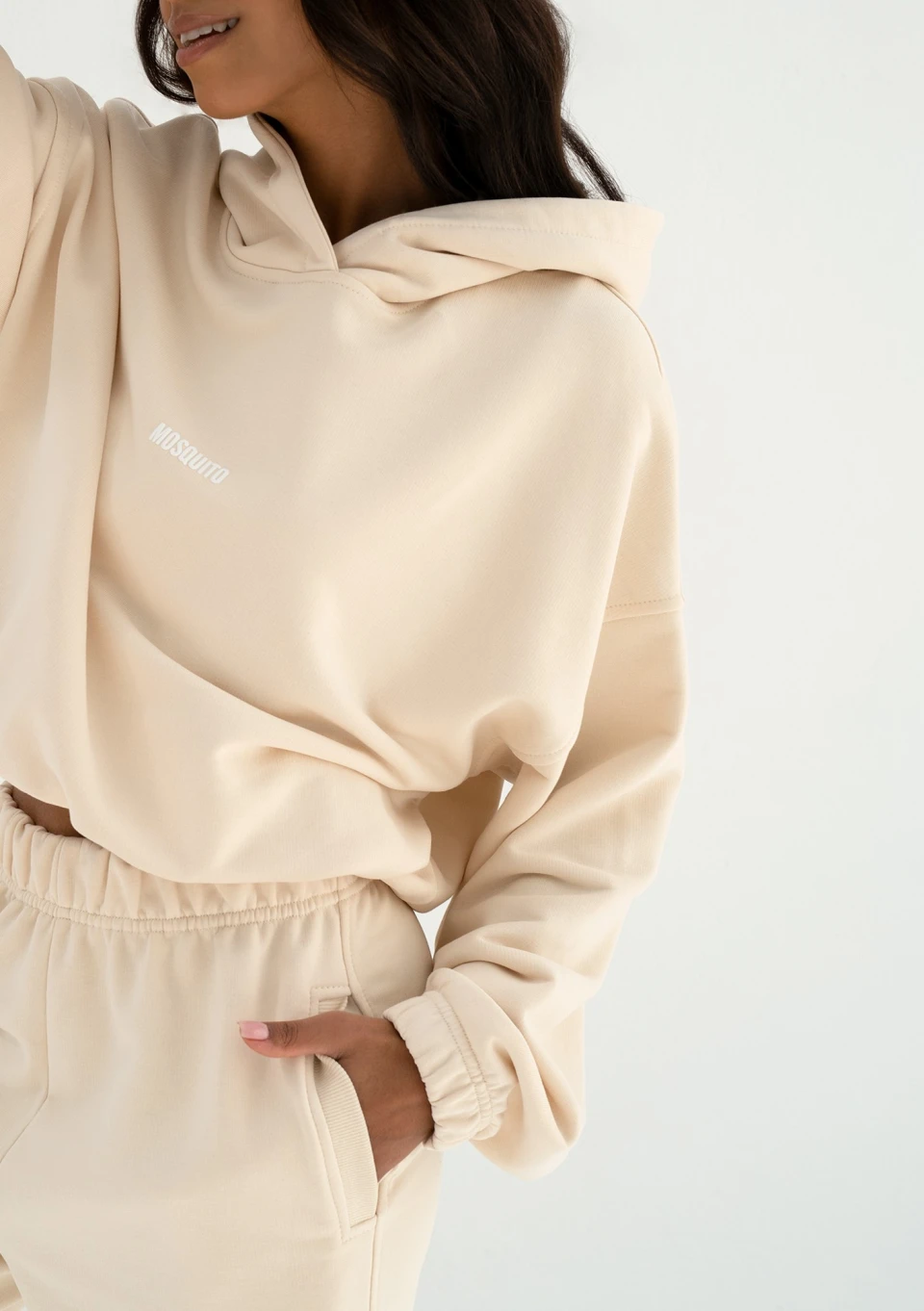 Modna bluza z kapturem o krótkim kroju, wykończona ściągaczem. Idealnie układa się na sylwetce. Postaw na model w waniliowym odcieniu.