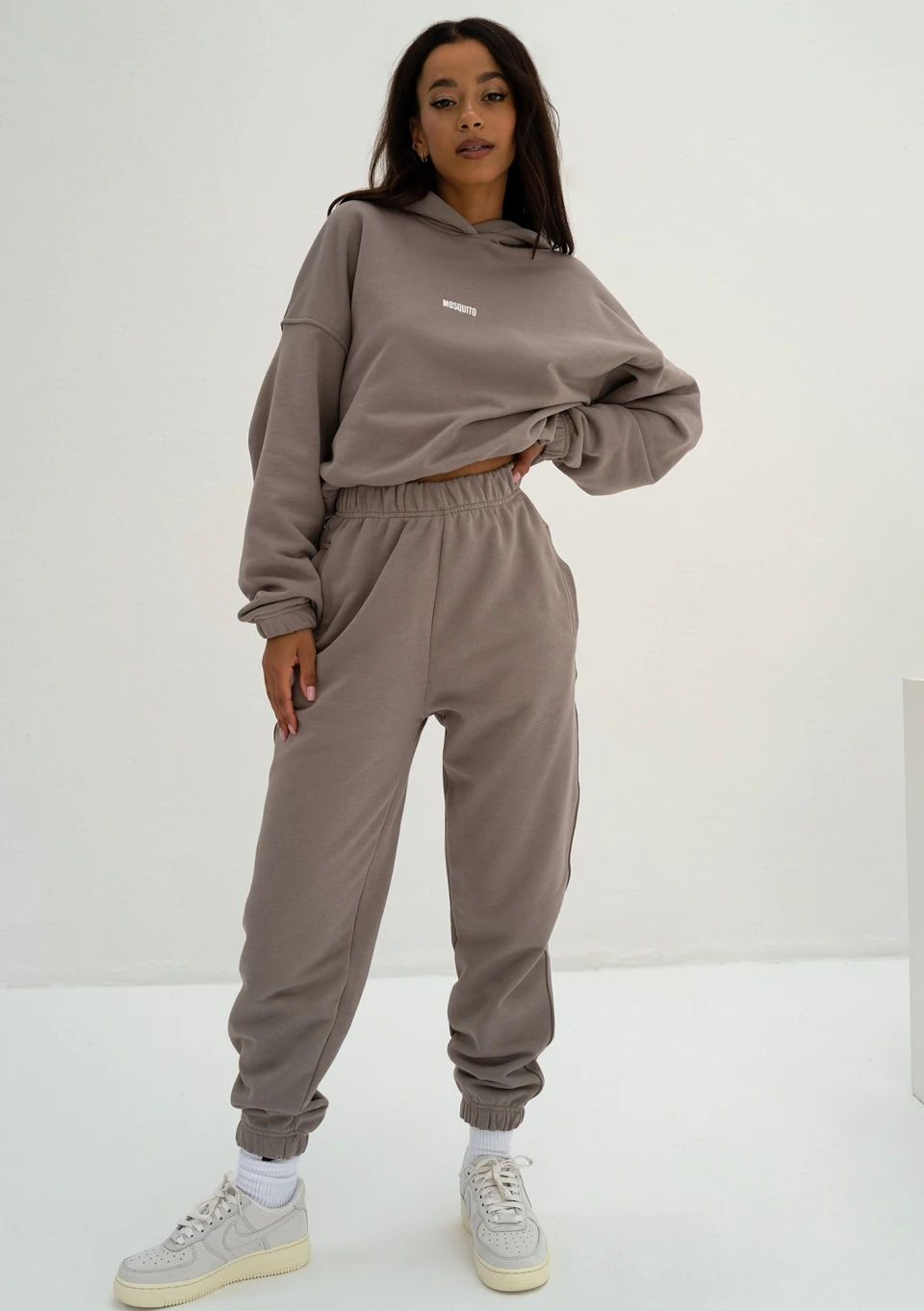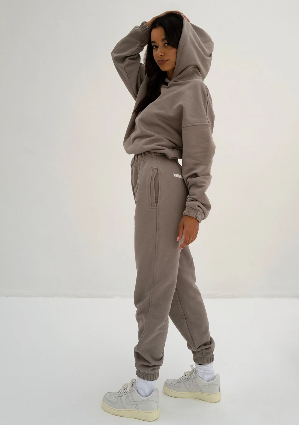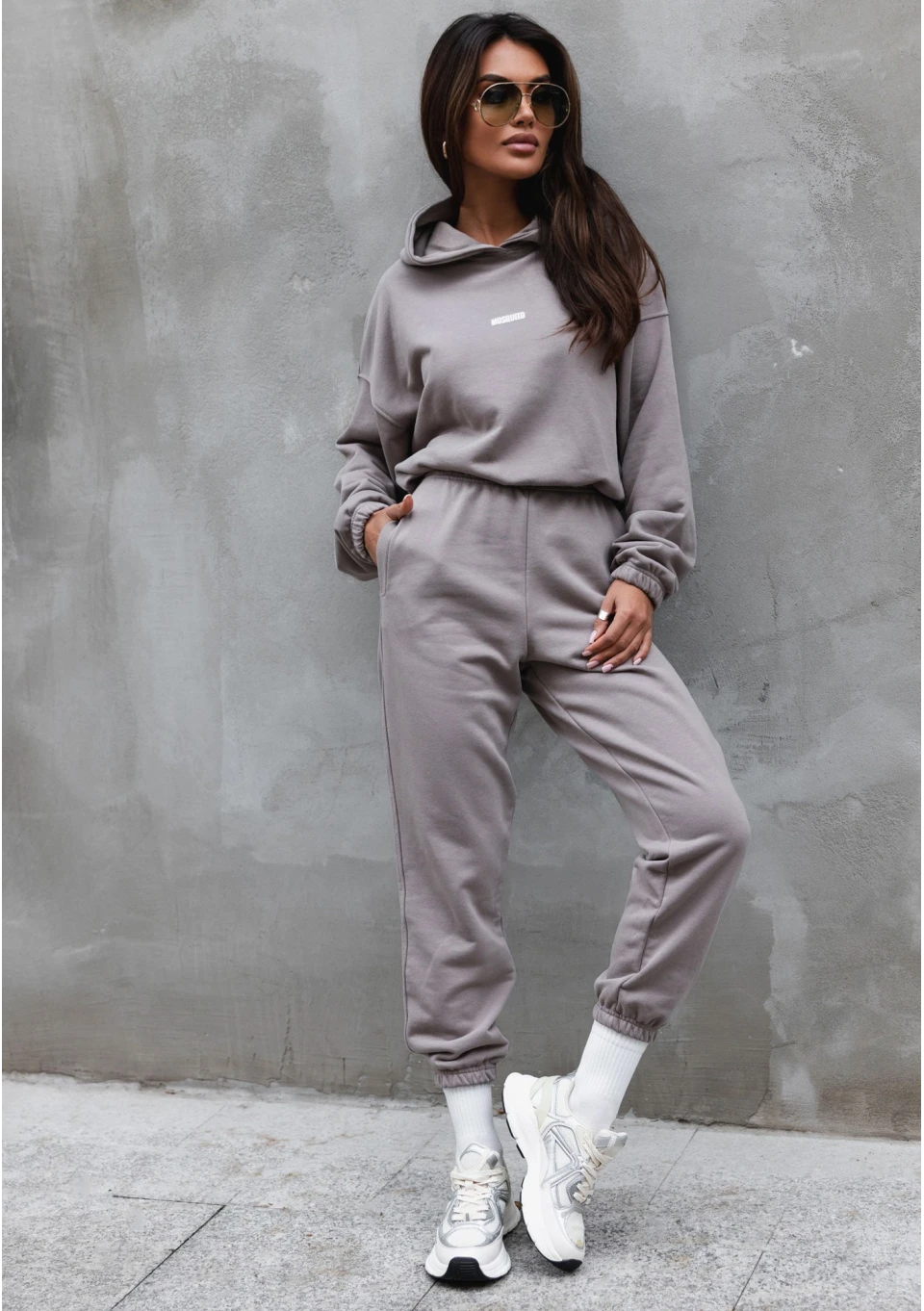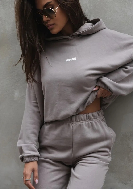 Odkryj nowy dres damski polskiej marki Mosquito. Luźna bluza damska z kapturem i ściągaczem została uszyta z dzianiny pętelkowej w pięknym kolorze taupe. Ten elegancki i neutralny stylistycznie odcień łączy w sobie szarość z beżem. Rewelacyjnie komponuje się z naturalną paletą barw, wpisuje się więc w kategorię uniwersalnych ubrań basic. Wybierz modną bluzę Icon, jeśli lubisz komfortowo luźne kroje i poszukujesz modelu wykonanego z dzianiny dresowej pętelkowej.