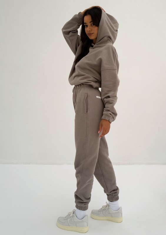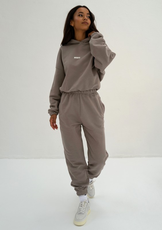 Icon to bluza z kapturem o krótkim kroju, wykończona mocnym ściągaczem. Idealnie układa się na sylwetce! Postaw na uniwersalny kolor taupe.