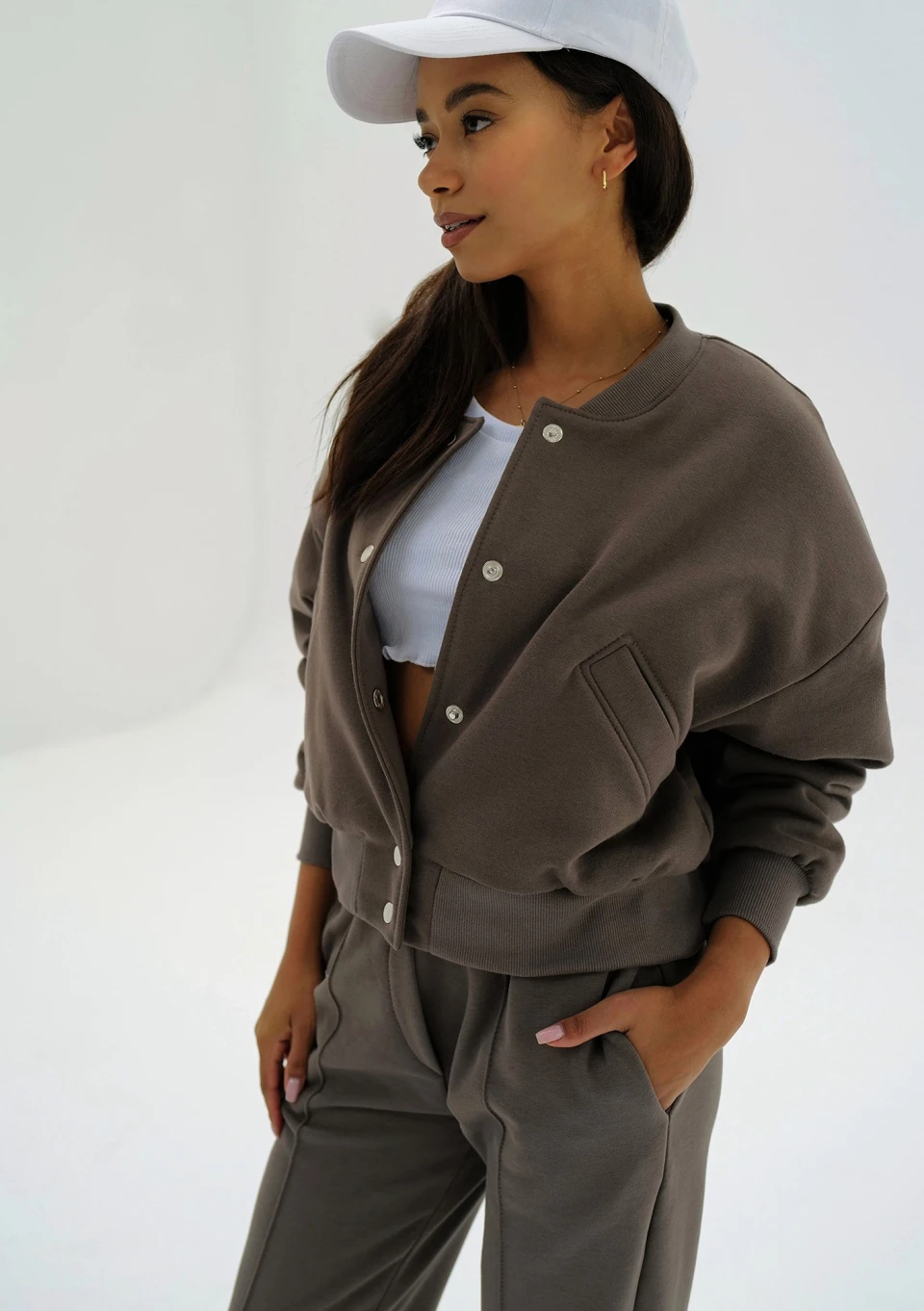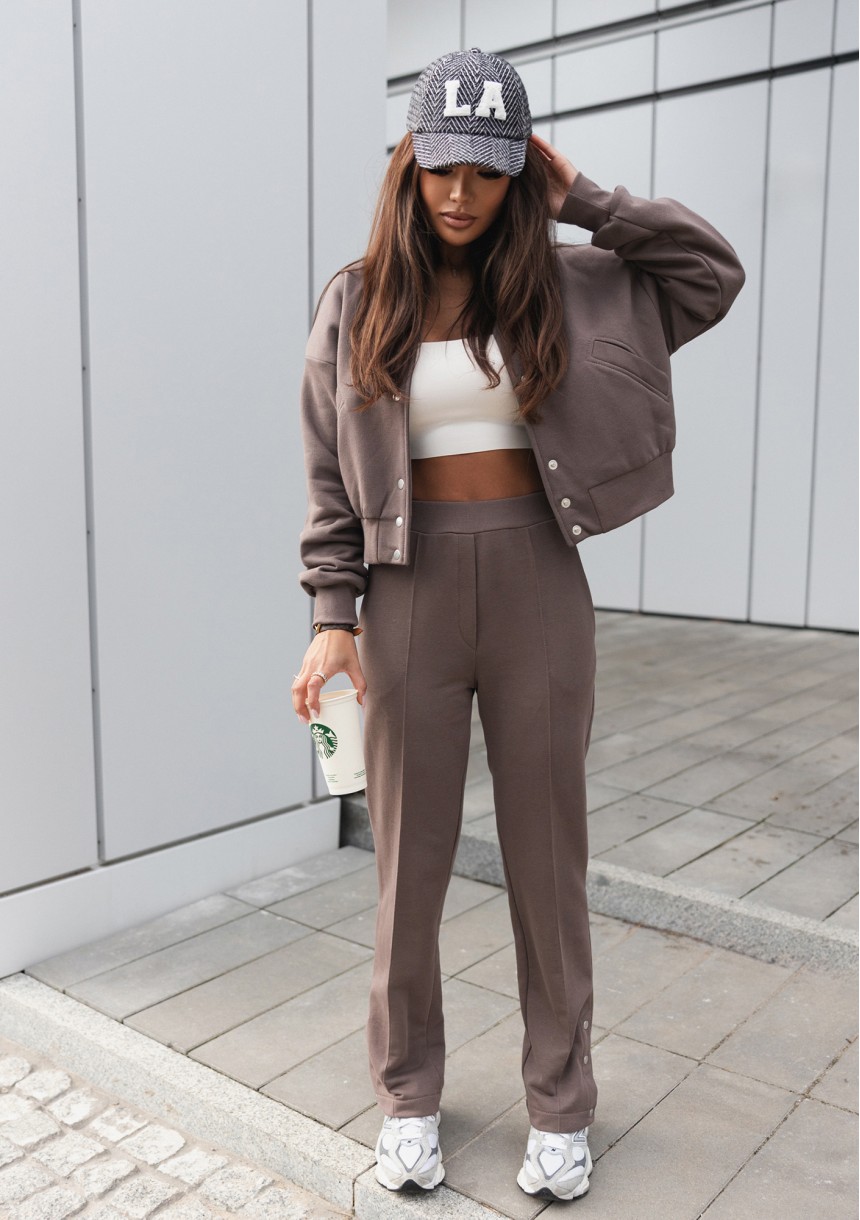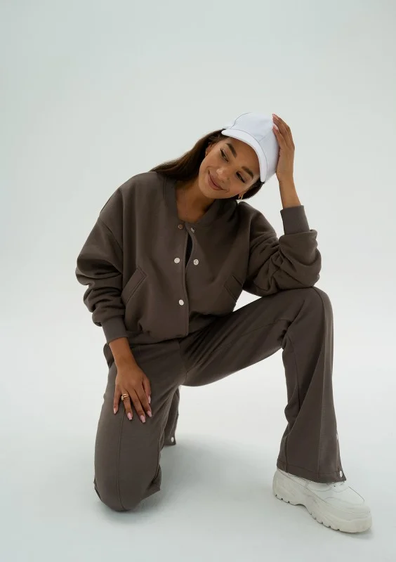 Bluza damska o kroju bomber to całkiem niepowtarzalny i wyróżniający się fason pełen dobrego stylu. Podkręci Twoje codzienne kombinacje! Postaw na model wykończony ściągaczami, wygodnie zapinany na metalowe napy. Ta brązowa bluza jest niesamowicie praktyczna.