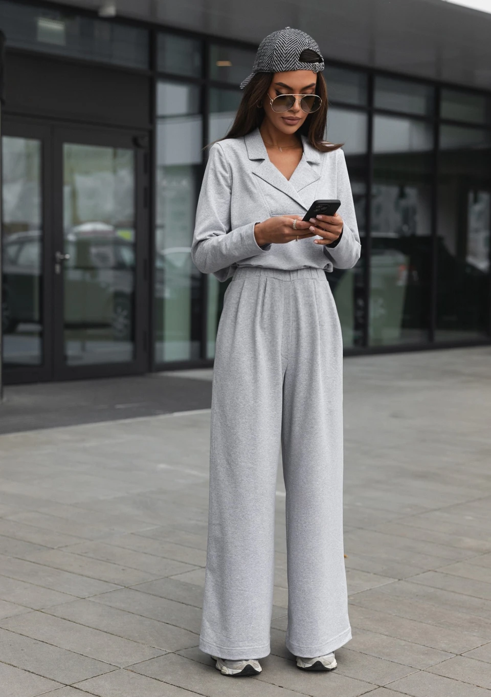Vibe - Bluza oversize z naszywką M Grey Melange