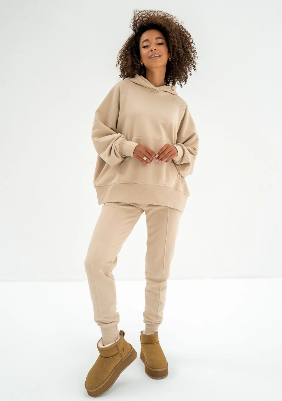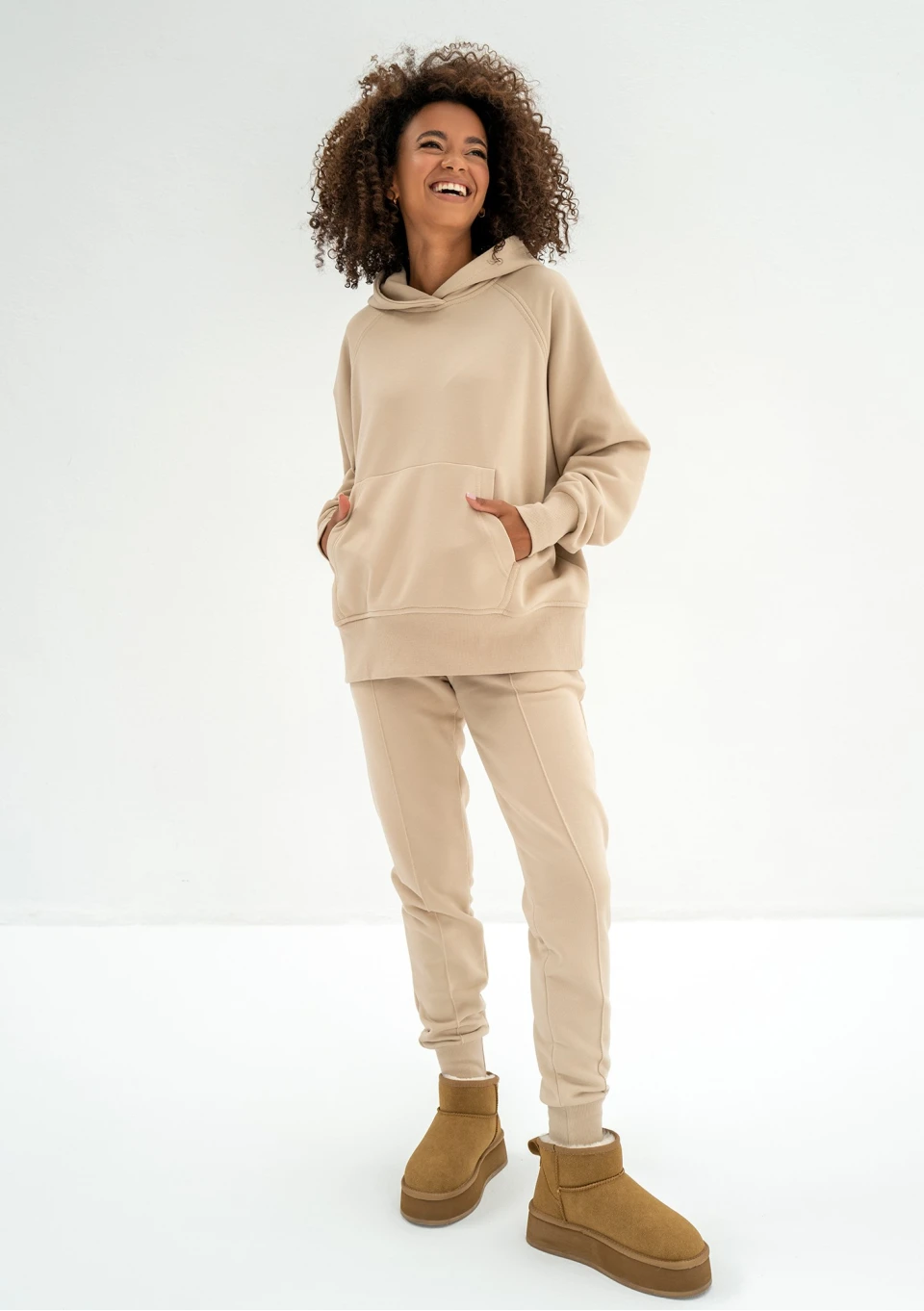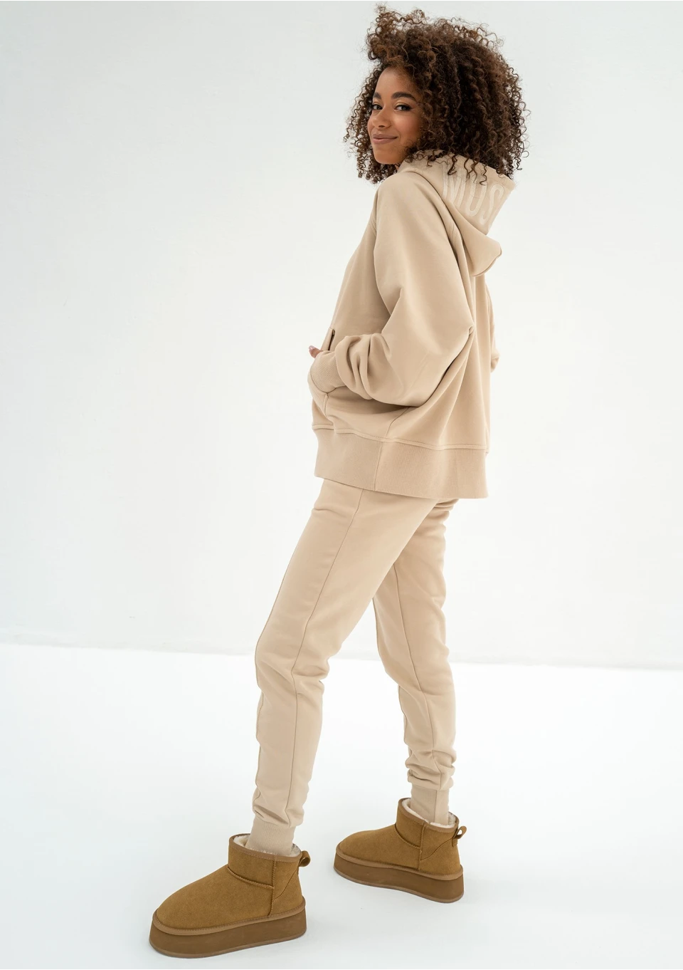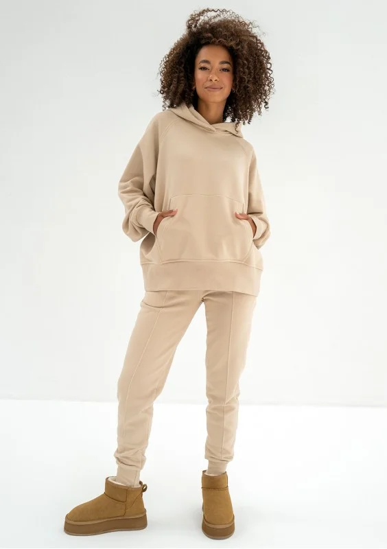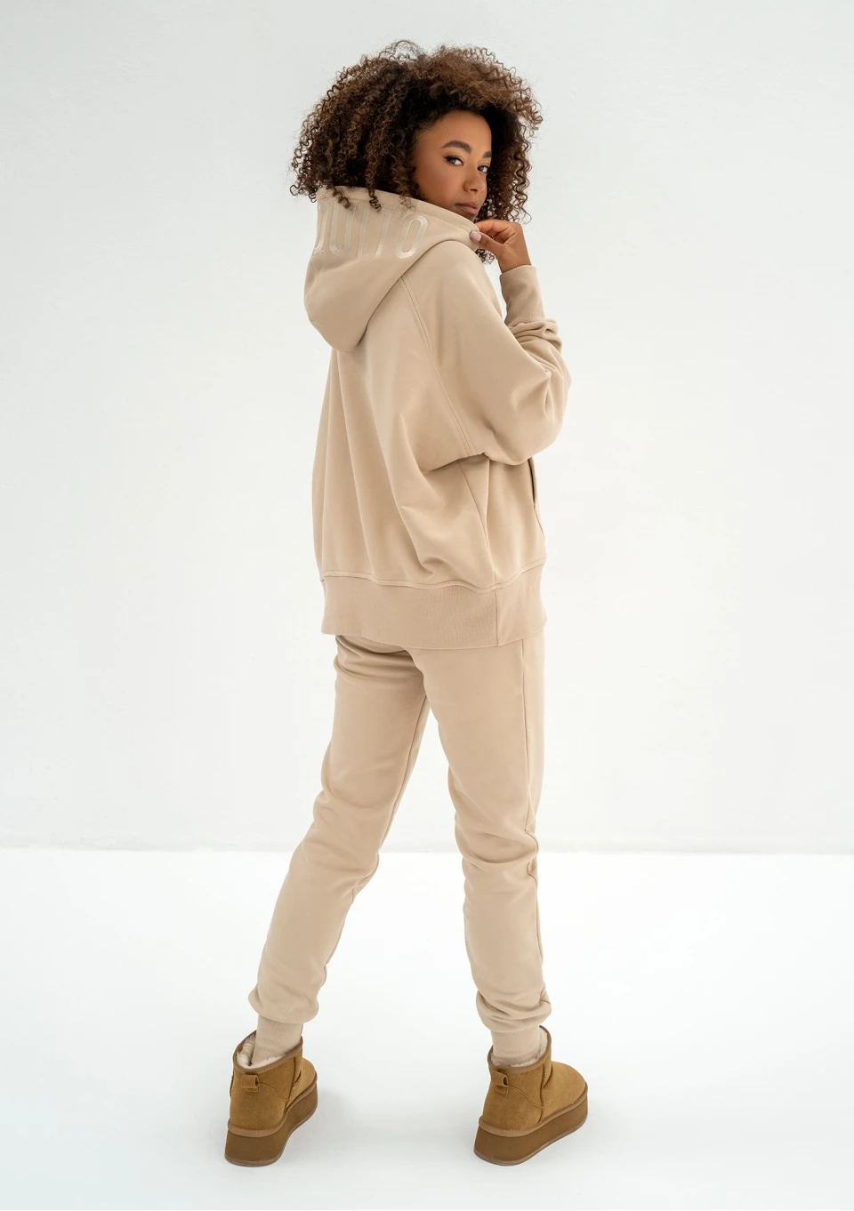 Hoody - Bluza kangurka z haftowanym kapturem Sand Beige