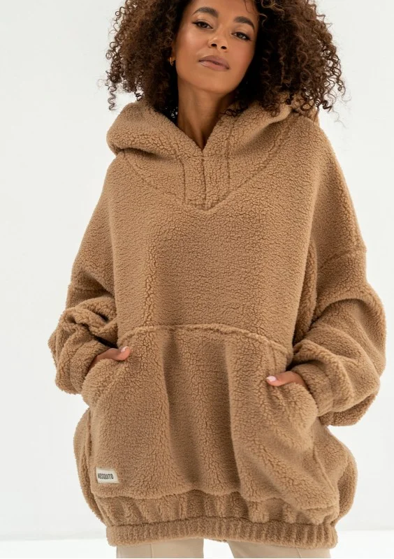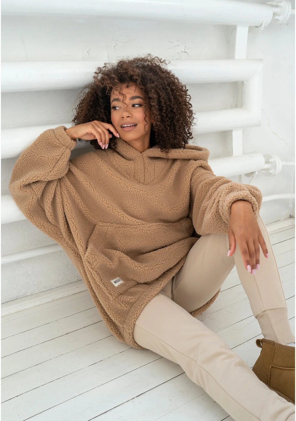Beżowa bluza damska z baranka to maksymalnie komfortowy model oversize. Pozwól sobie na przyjemnie ciepłe i miękkie otulenie w ponure, zimowe dni.