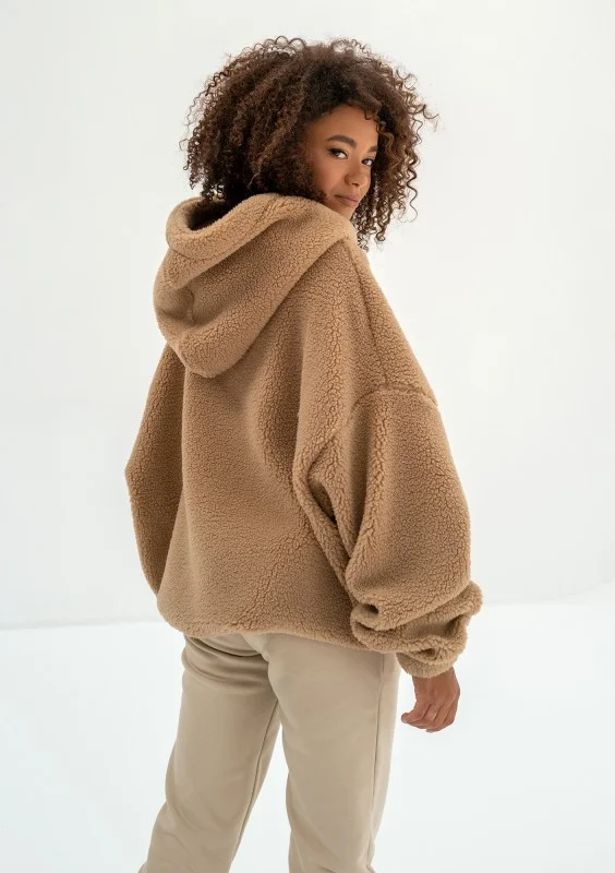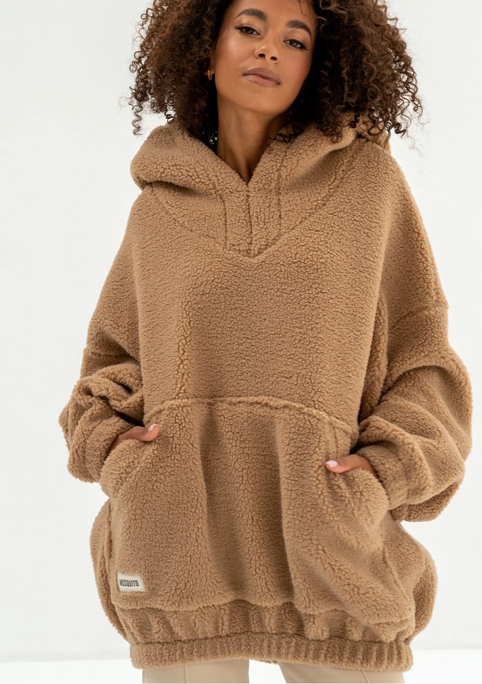 Ozzy - Bluza z baranka oversize z kapturem Beżowa