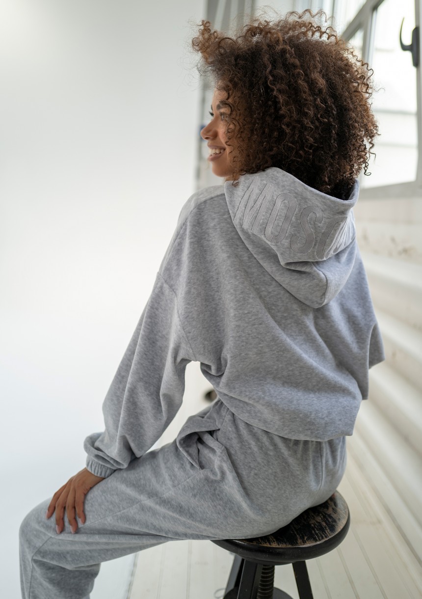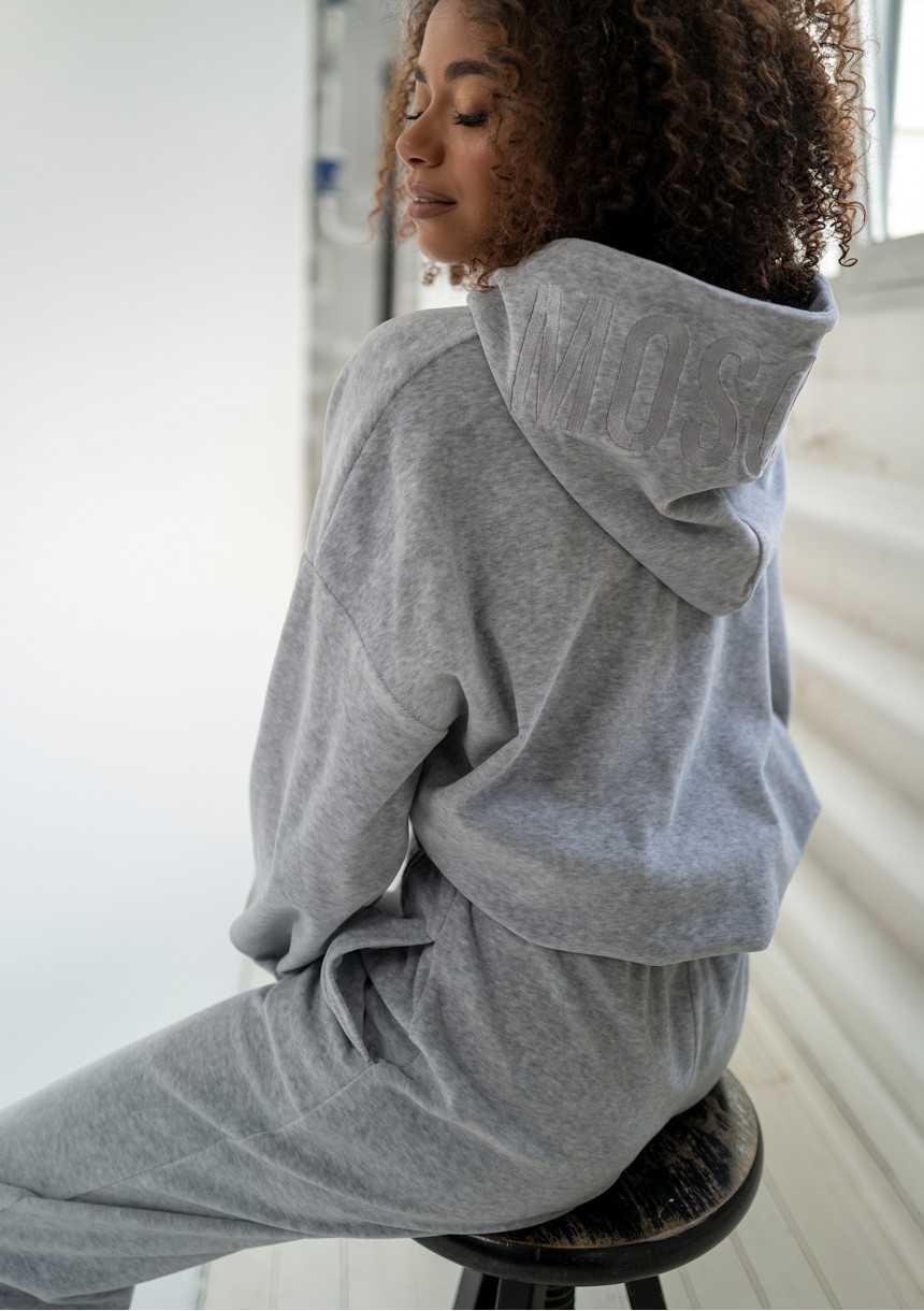Icon Velvet - Bluza welurowa z kapturem Grey Melange