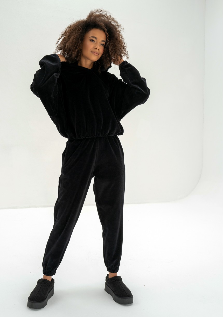 Icon Velvet - Bluza welurowa z kapturem Black