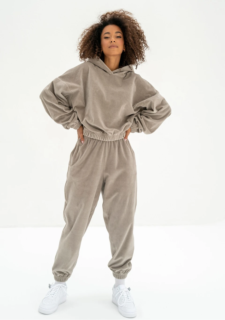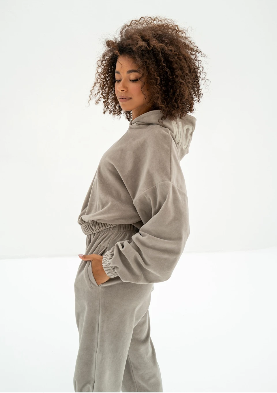 Icon Velvet - Bluza welurowa z kapturem Taupe
