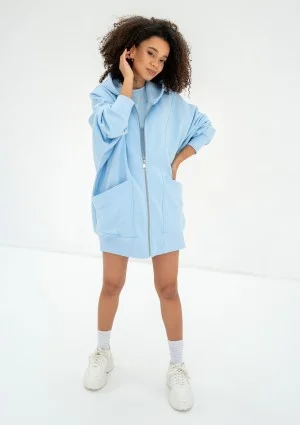 Amala - Oversizowa bluza rozpinana z kapturem Baby Blue