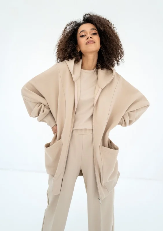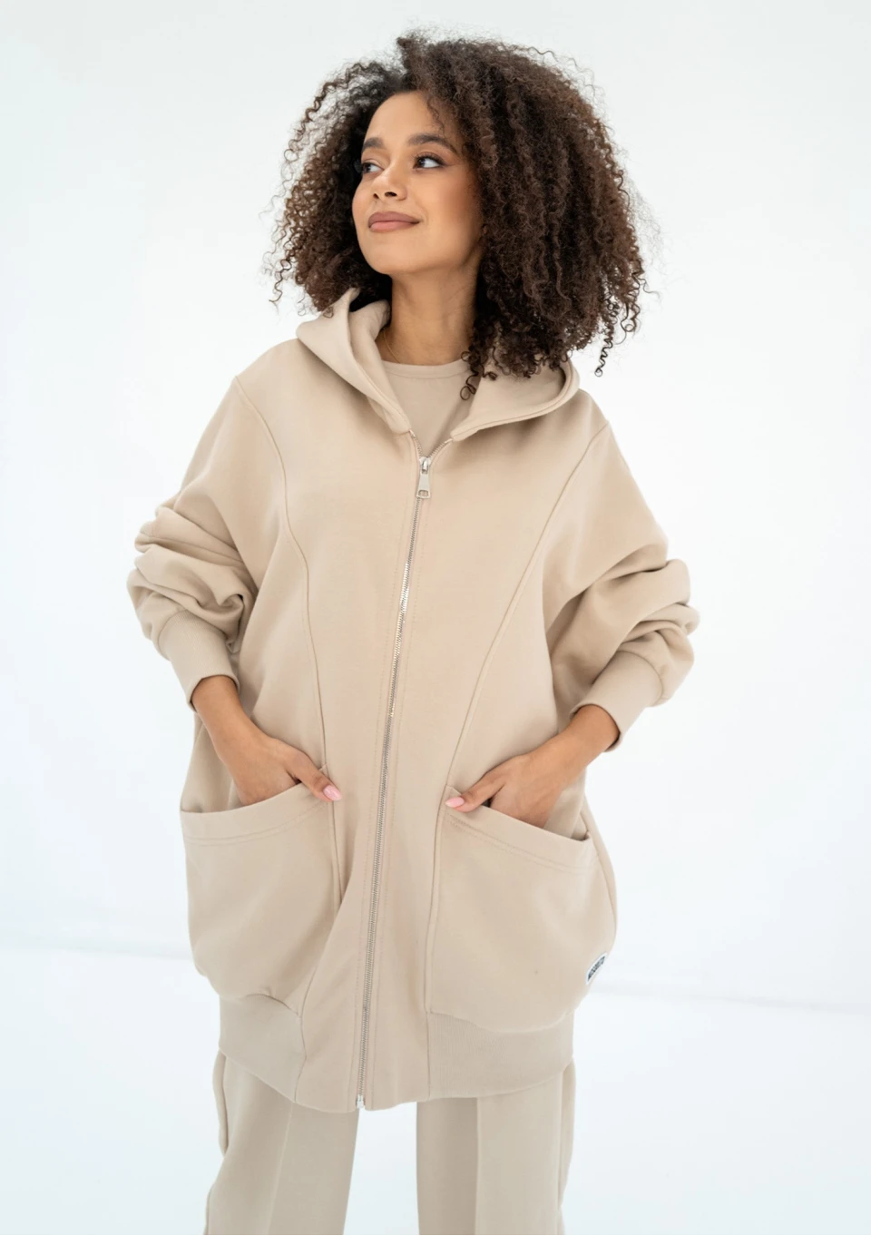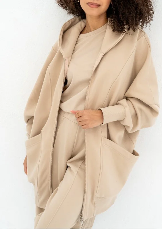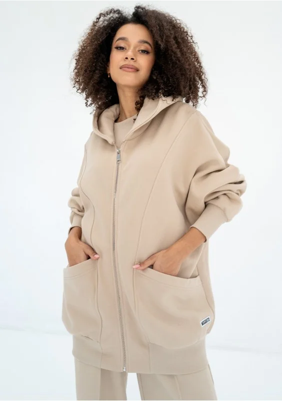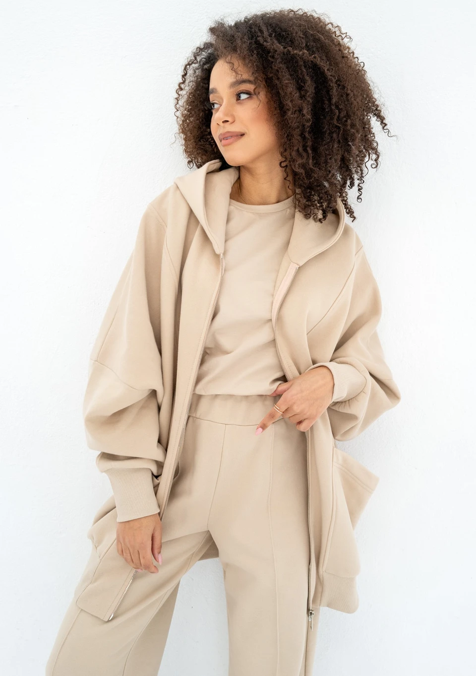 Amala - Oversizowa bluza rozpinana z kapturem Sand Beige