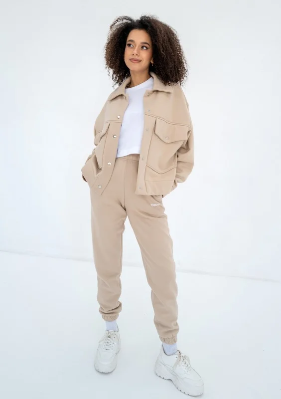 Beżowa bluza damska rozpinana Tribe to aktualnie najmodniejszy fason. Koniecznie odkryj trend na kieszenie cargo. Zdobią one przód zapinanego na zamek fasonu. Bluza jest wykończona kołnierzykiem i została uszyta z bawełnianej dzianiny o miłym w dotyku spodzie. Wewnętrzna faktura to miękki meszek włókien. Bluzę możesz połączyć ze spodniami dresowymi Pure lub Costa, a także szortami Bane w tym samym kolorze.