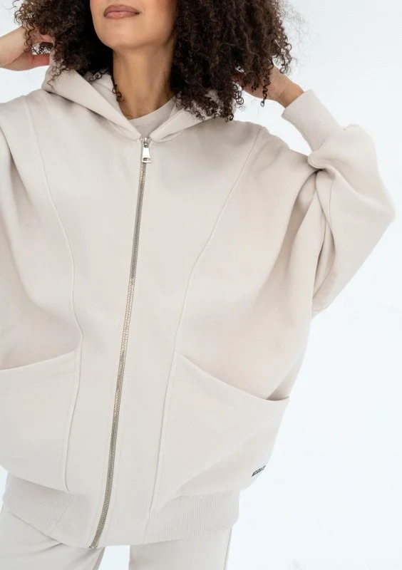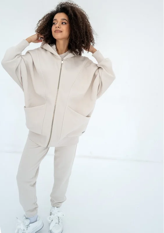 Modna bluza damska dla koneserek wygodnych form oversize. Funkcjonalność fasonu wyznaczają pojemne kieszenie, kaptur i zapięcie.
