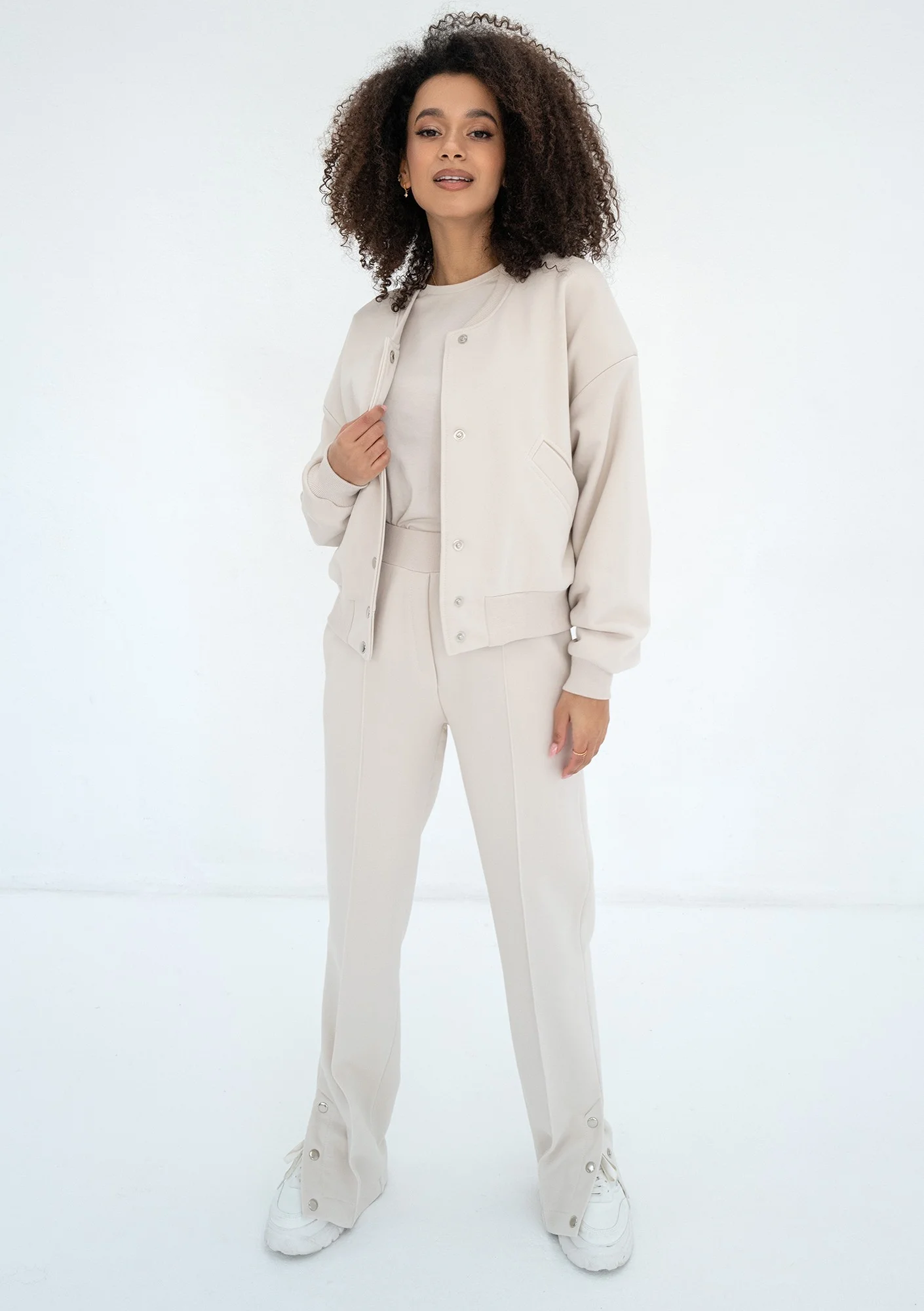 Bluza damska o kroju bomber to całkiem niepowtarzalny i wyróżniający się fason pełen dobrego stylu. Podkręci Twoje codzienne kombinacje! Postaw na model wykończony ściągaczami, wygodnie zapinany na metalowe napy. Ta modna bluza w pięknym, kokosowym kolorze jest niesamowicie praktyczna.