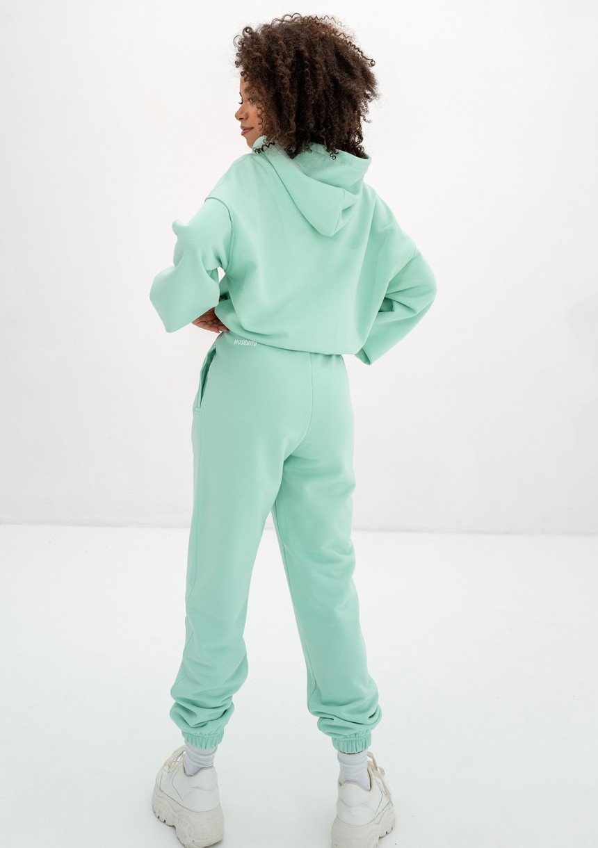 Miętowa bluza dresowa o krótkim kroju, wykończona ściągaczem. Zastosowana dzianina pętelkowa idealnie sprawdzi się w cieplejsze dni.