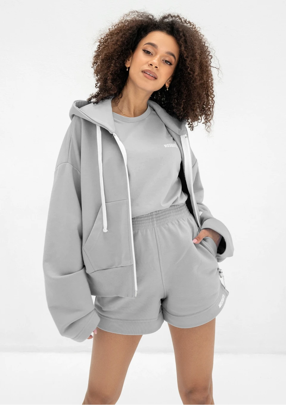 Daj się oczarować wygodnej formie oversize i znakomitej jakości materiału, jak i wykonania. Zaprojektowaliśmy dla Ciebie najmodniejszy i w pełni funkcjonalny fason bluzy z kapturem i kieszeniami, regulowany troczkami. Design pięknie dopełniają białe elementy, w tym stylowe logo Mosquito. Ta modna bluza damska w gładkim, szarym kolorze będzie doskonałym zakupem.