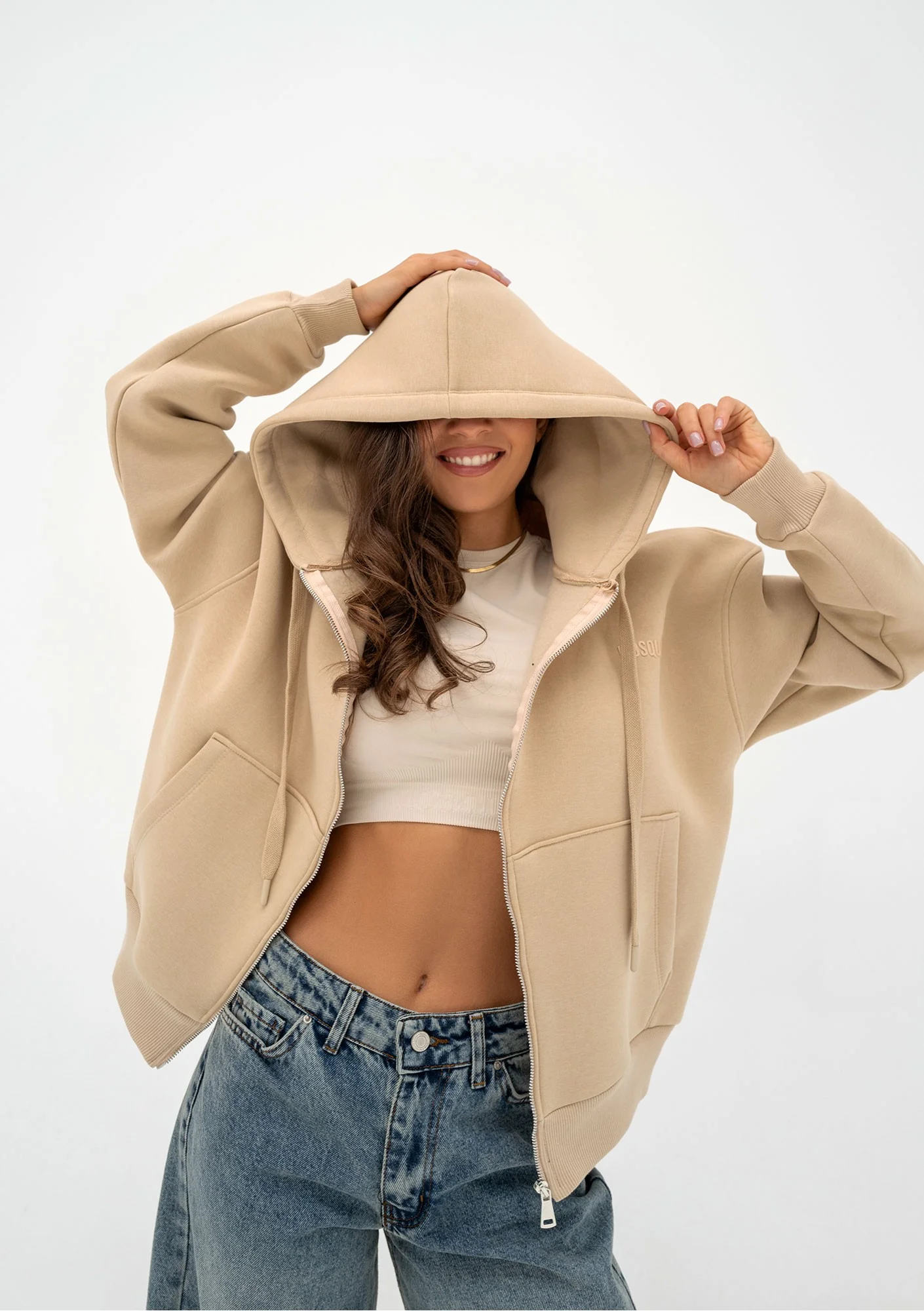 Rozpinane bluzy damskie stanowią jeden z najwygodniejszych wyborów. Dostosujesz fason do ciągłych zmian temperatury, zapinając go, gdy tylko zrobi się chłodniej. Oversizowa bluza Glee ma funkcjonalny, świetnie skrojony kaptur, wygodnie regulowany troczkami. Pojemne kieszenie pozwolą Ci mieć najważniejsze przedmioty pod ręką. Cieplutka dzianina dresowa tej bluzy oczaruje Cię wysoką jakością i trwałością. Materiał nie odkształca się, dzięki wsparciu włókien elastanu.