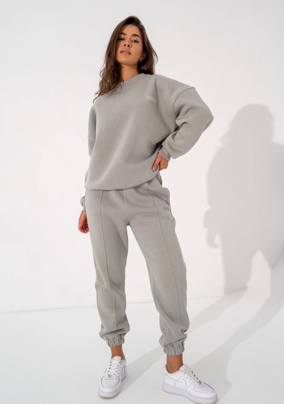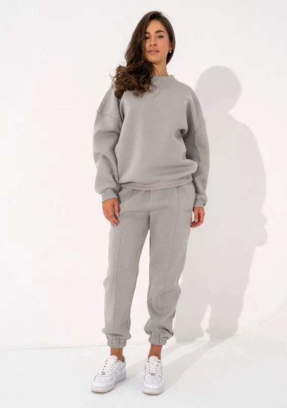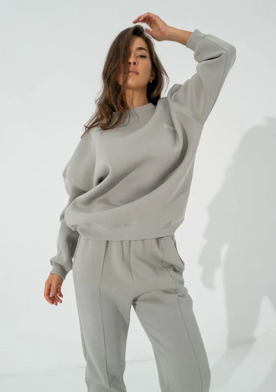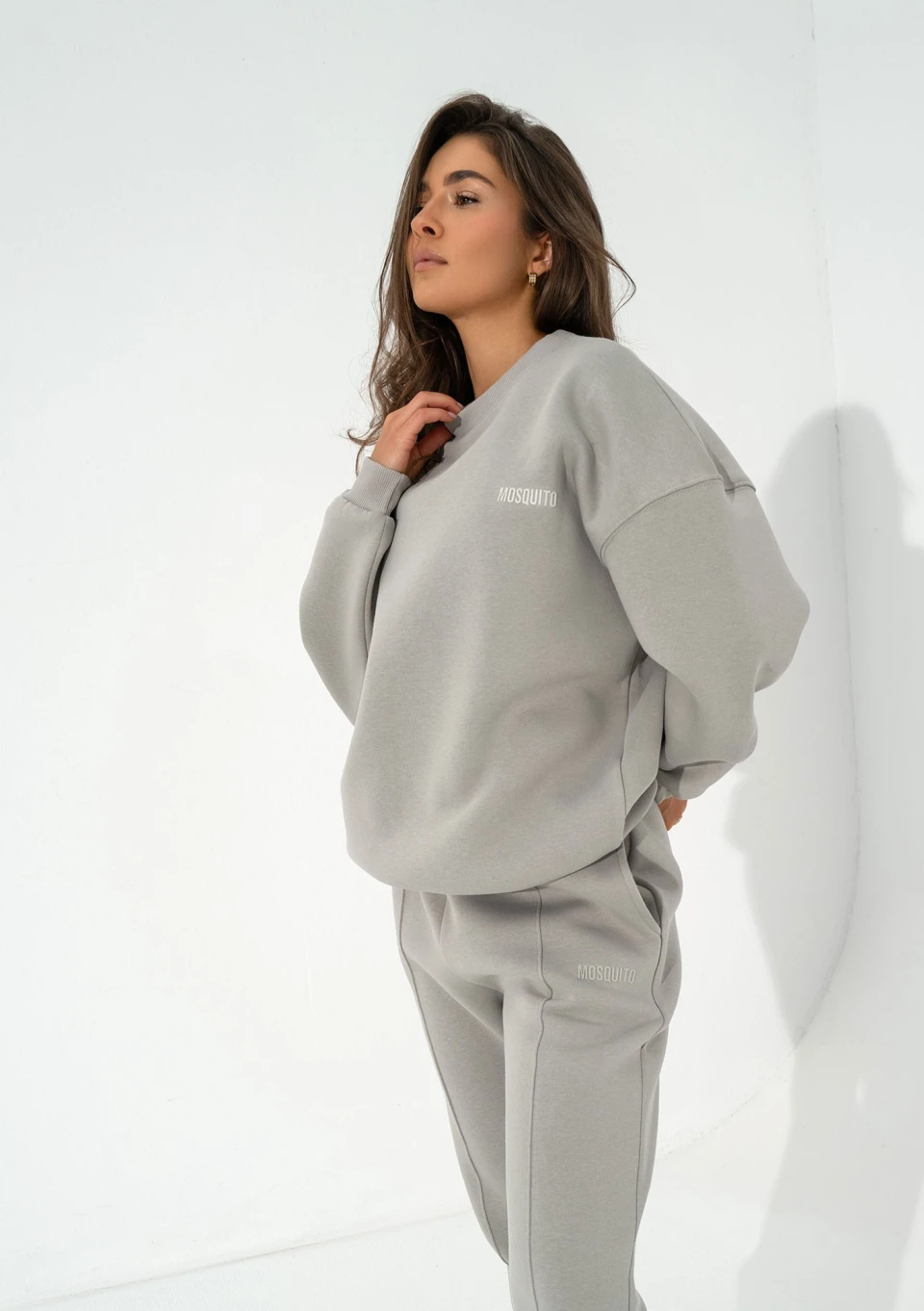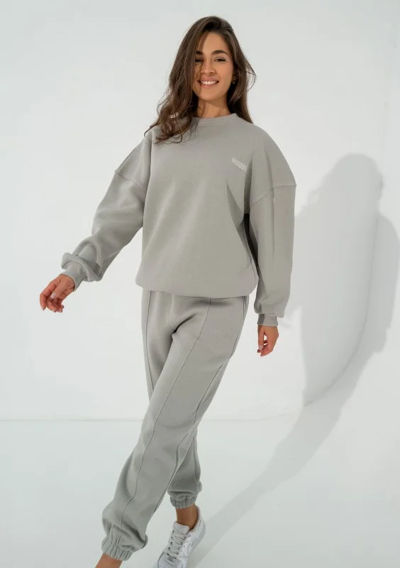 Stylowa bluza dresowa o bardzo luźnym kroju, pozbawiona detali, minimalistycznie zdobiona logiem. Wykonana z miękkiej dzianiny w szarym kolorze.