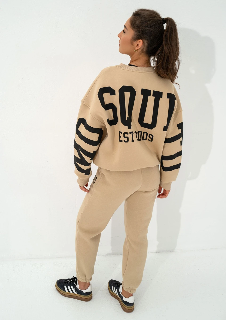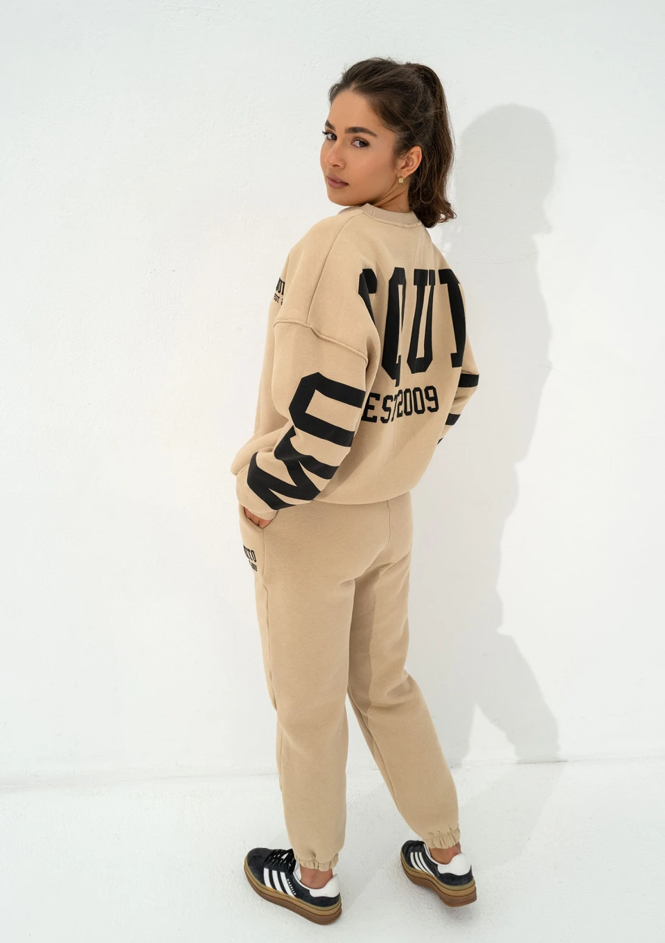 Beżowa bluza dresowa damska Duve od razu stała się naszym bestsellerem. Kradnie serca wyjątkowym, bo bardzo wyrazistym designem logotypu. Ten fason bardzo mocno zwraca uwagę, dodaje maksimum luzu i wygody. Zdecydowanie perełka dla miłośniczek "cozy look" w ultrasportowym wydaniu. Miękki i cieplutki materiał bawełniany idealnie sprawdzi się w chłodniejszej porze. Do bluzy Duve idealnie pasują spodnie dresowe Duve, zarówno pod kątem koloru, jak i stylu loga. Możesz zestawić ją również z innymi beżowymi spodniami z tej samej dzianiny bawełnianej, która składa się w 90% z bawełny i po 5% z poliestru i elastanu.