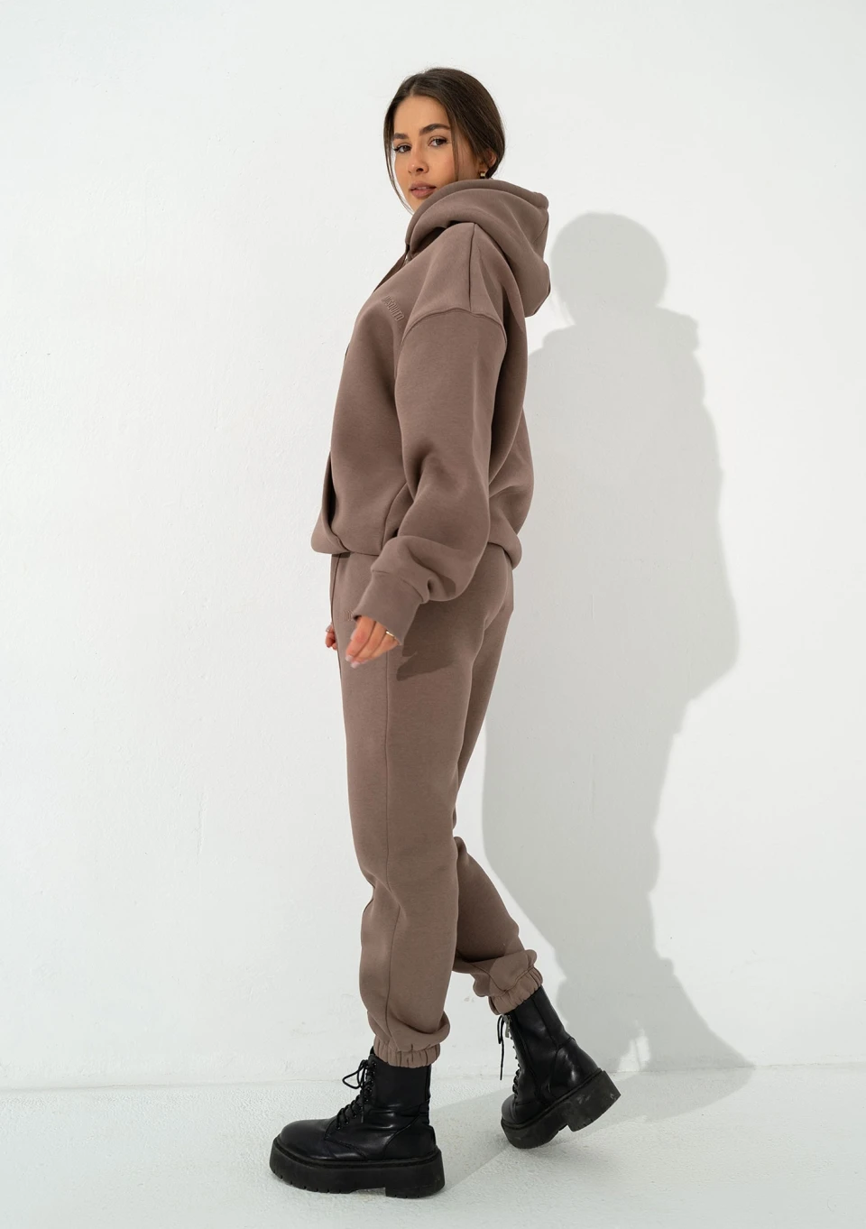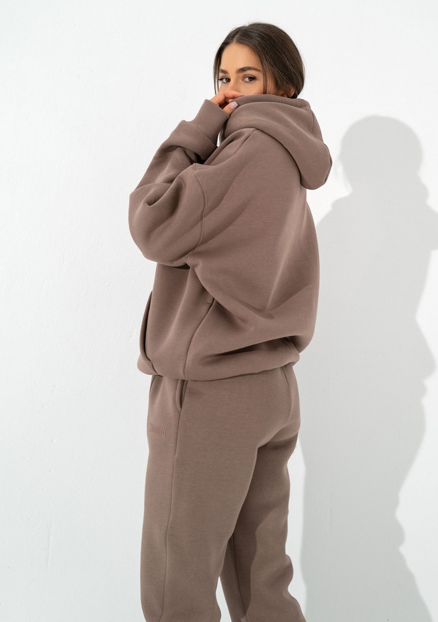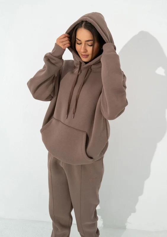 Wygodna kangurka damska z kieszenią i praktycznym kapturem z regulacją troczków. Klasyczny model w odcieniu kawowym.