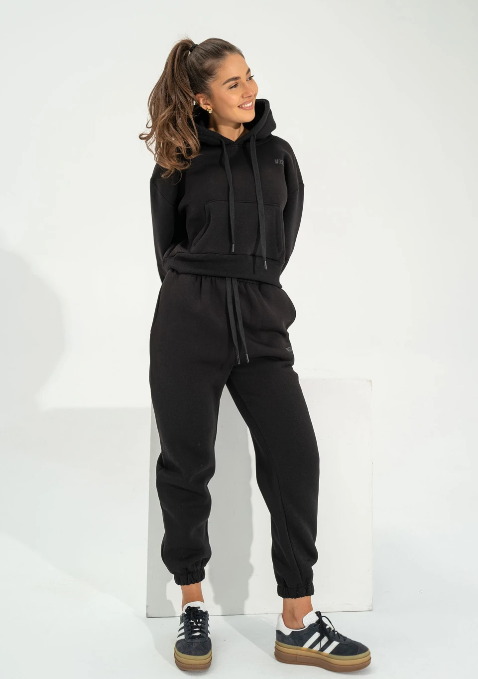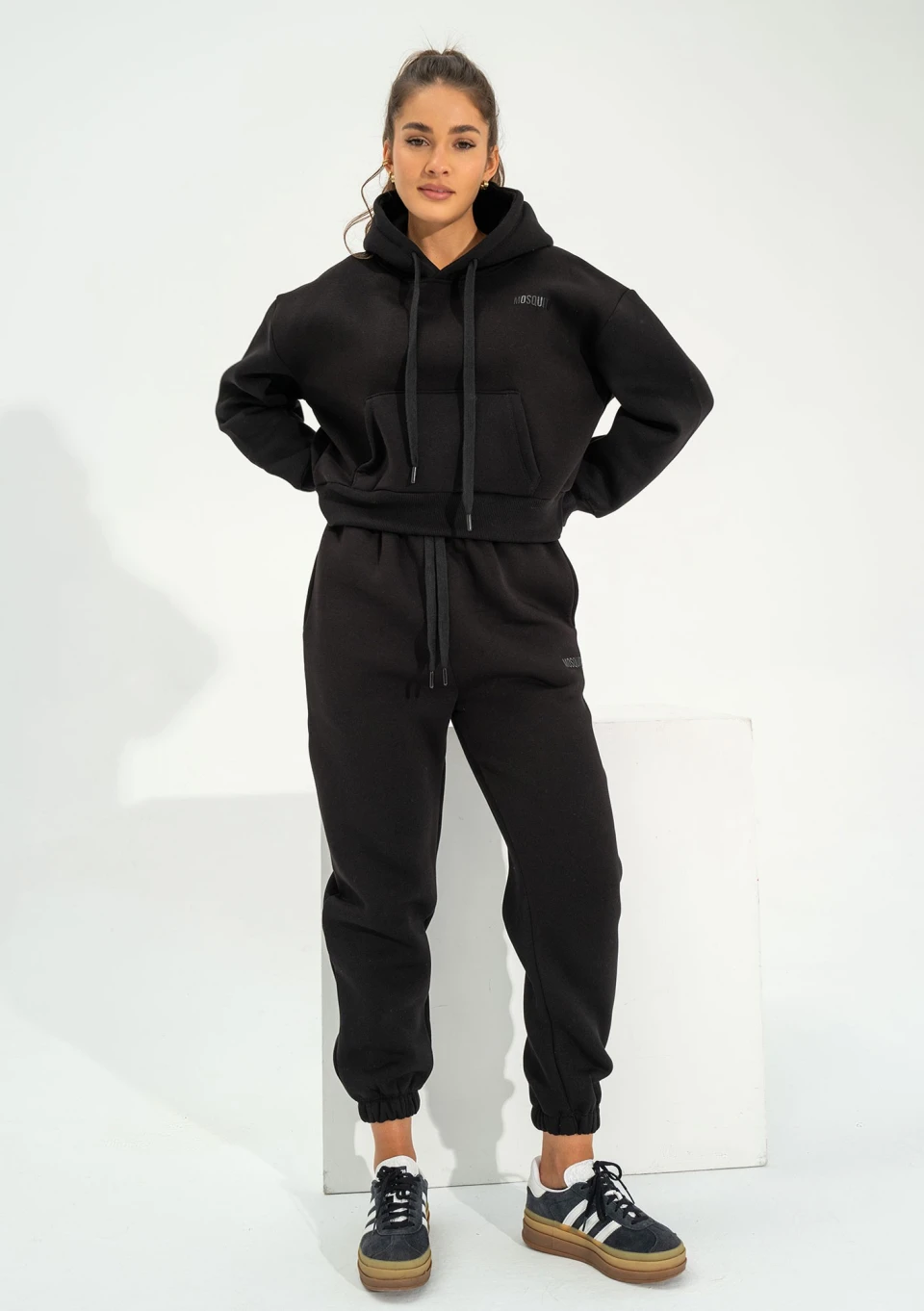 Nowe bluzy damskie Mosquito to kolejne bogactwo stale udoskonalanych fasonów. Prezentowana czarna kangurka damska posiada krótki krój, wykończony szerokim ściągaczem. Kaptur zyskał na jeszcze większej praktyczności dzięki sznureczkom. Logo w tym modelu jest zachowane w spójnej kolorystyce. Poszukujesz bluzy, która otuli Cię ciepłem? Ten model został stworzony z myślą o chłodniejszych porach roku. Grubsza dzianina dresowa o gramaturze 300g/m2 i dodatek elastanu sprawiają, że bluza jest nie tylko ciepła, ale także niezwykle wygodna i wytrzymała.