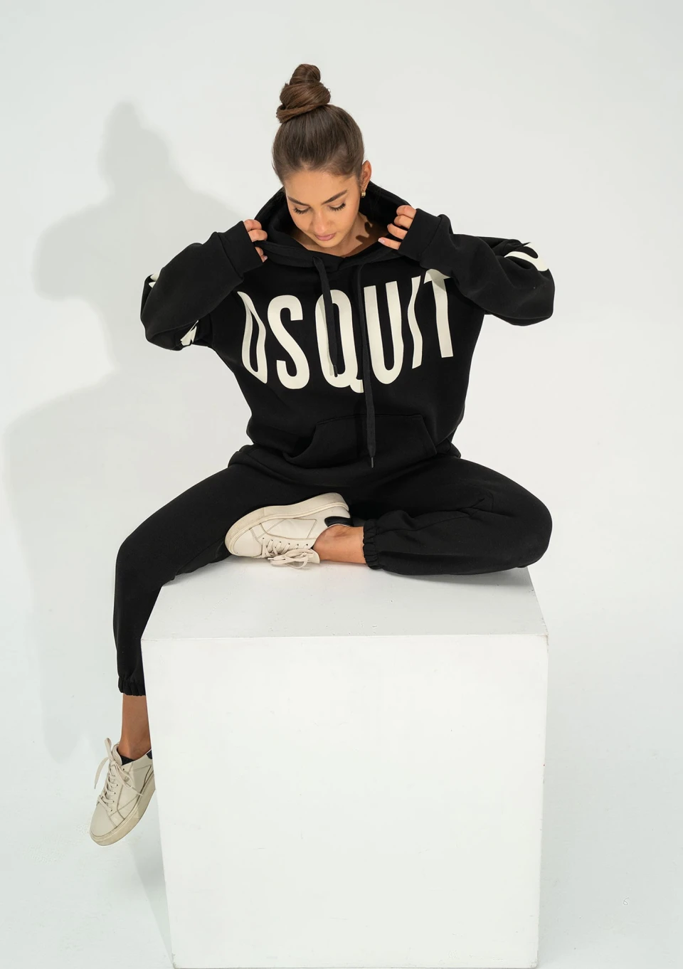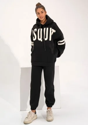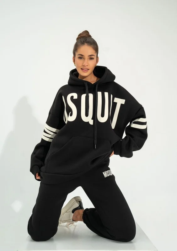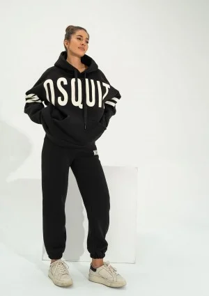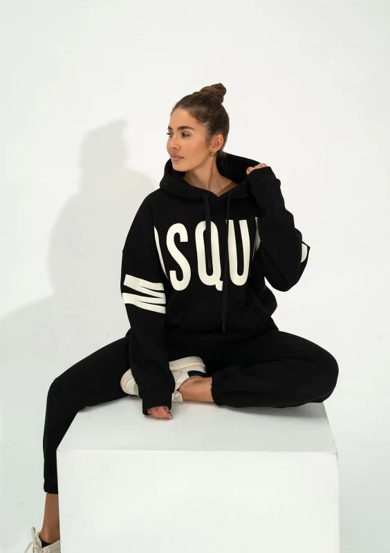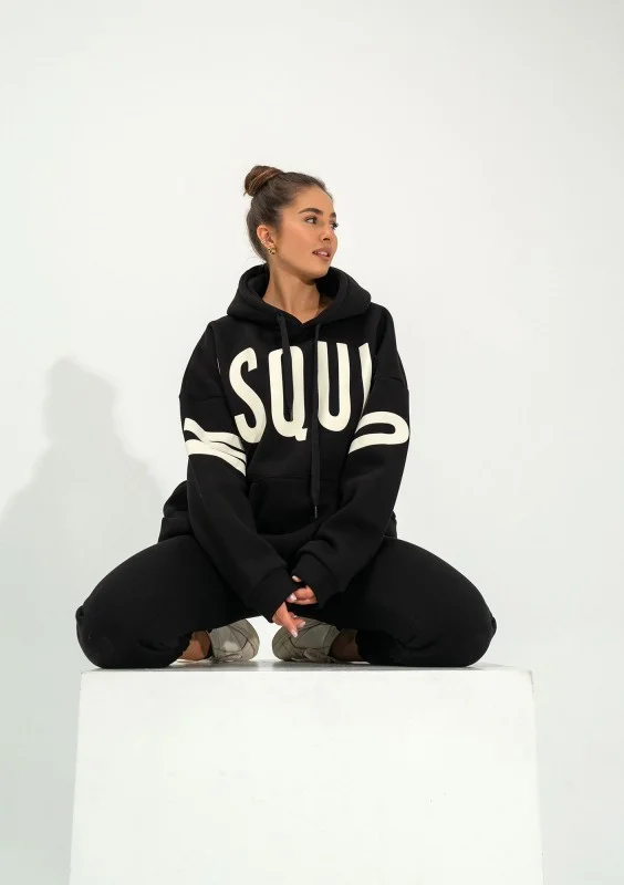 Champ to designerska, czarna bluza damska z kapturem wykonana z nieco innowacyjnej w naszym sklepie dzianiny drapanej. Nowy materiał ma zmniejszony udział poliestru na rzecz elastanu, który działa wzmacniająco na strukturę, dodając sprężystości i wytrzymałości. W przeważającej części jest to naturalna bawełna, dlatego będzie Ci w niej w pełni wygodnie. Forma bluzy z kapturem jest mocno oversizowa. Do tego modelu najlepiej pasują dedykowane spodnie dresowe Champ, a także fason Duve z nieco innym logiem.