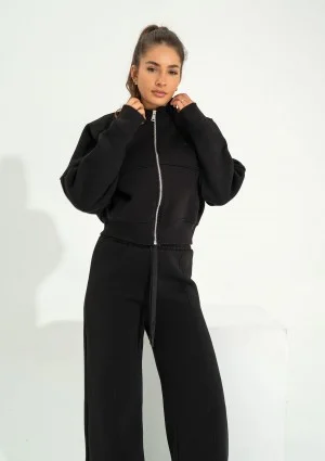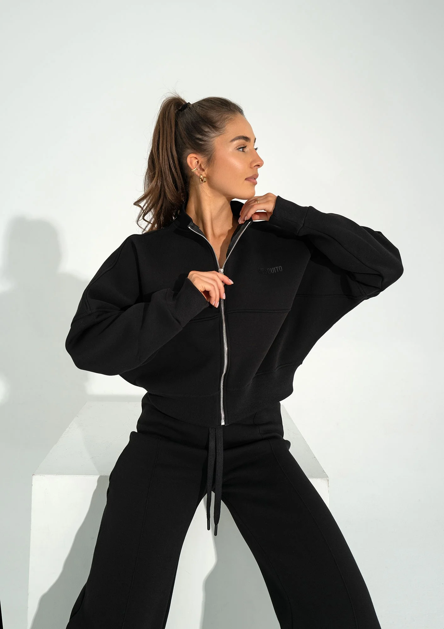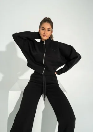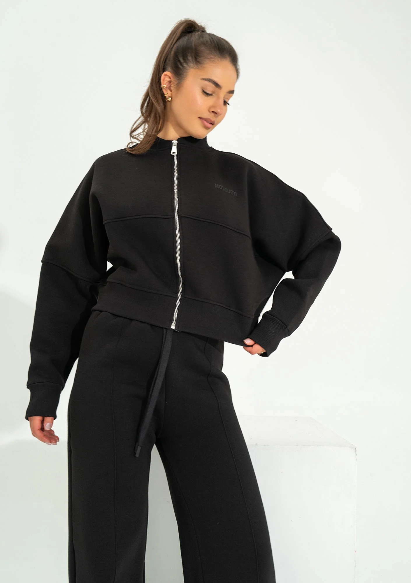 W naszym Mosquito pojawia się teraz wiele nowych fasonów, więc trzymaj rękę na pulsie. A może wreszcie doczekałaś się wymarzonego kroju? Ta czarna rozpinana bluza damska dresowa pozytywnie zaskoczy Cię w chłodniejszym okresie przejściowym. Włókna tworzą miękki, ciepły puszek od spodu, który umili Ci każdą chwilę. Wygoda liczy się ponad wszystko! Jeśli poszukujesz klasycznej bluzy rozpinanej, która nie jest oversize, idealnie trafiłaś. Nasz model Bailee bez kaptura to subtelny, elegancki fason na każdą okazję. Bluza ma krótki krój, więc sprawdzi się także paniom o niższym wzroście.