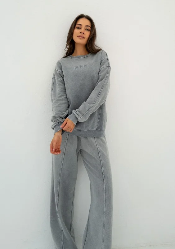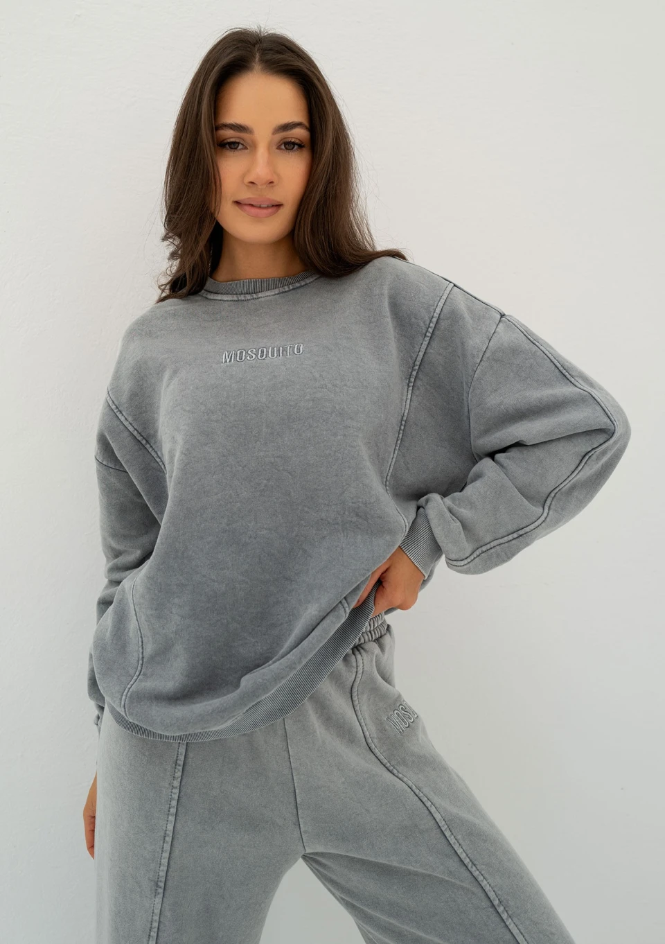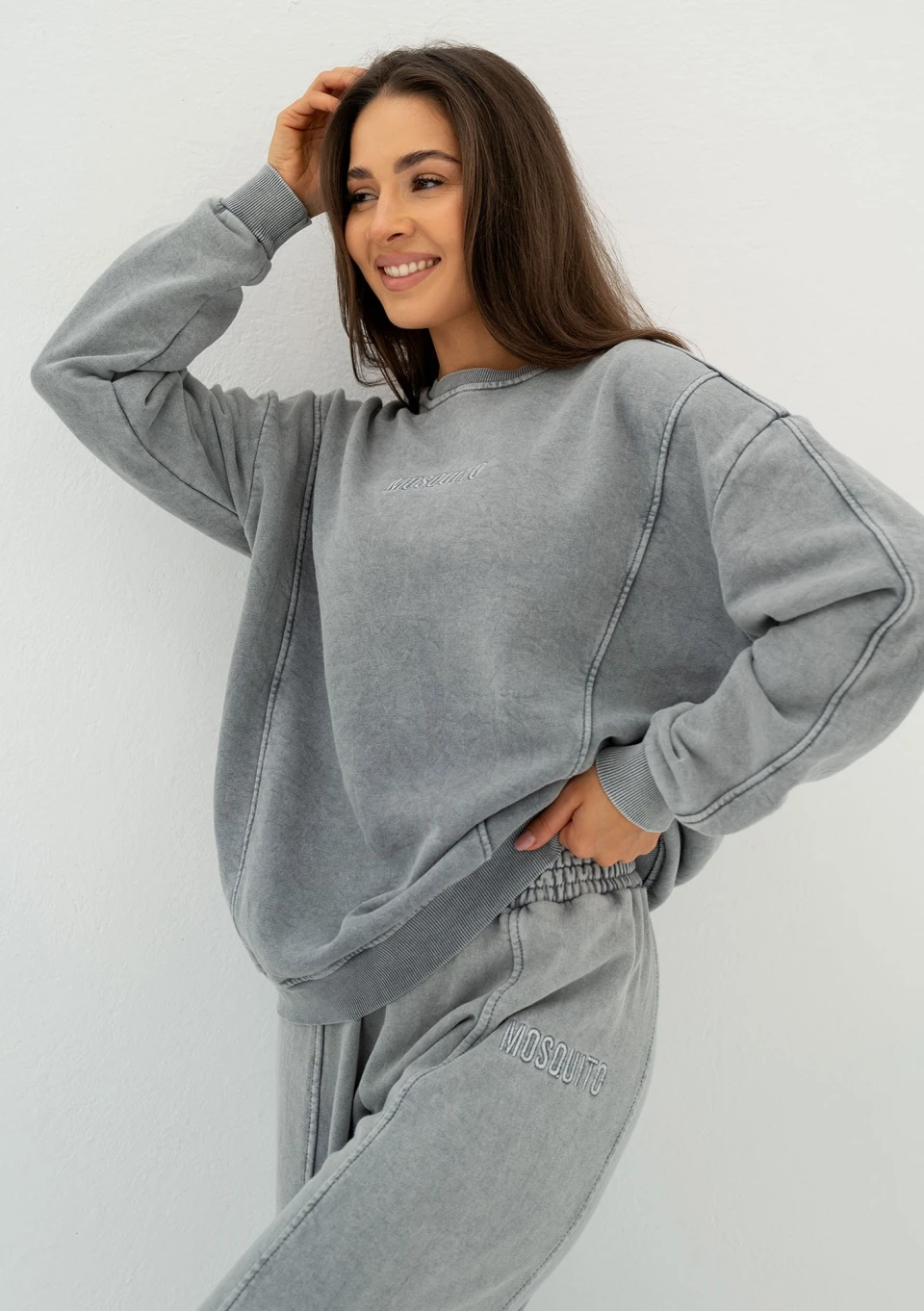 Szara bluza damska bawełniana vintage dla miłośniczek klasycznych fasonów. Wygodna i wszechstronna, pozbawiona kaptura. Dopełniona wyszywanym logiem marki.