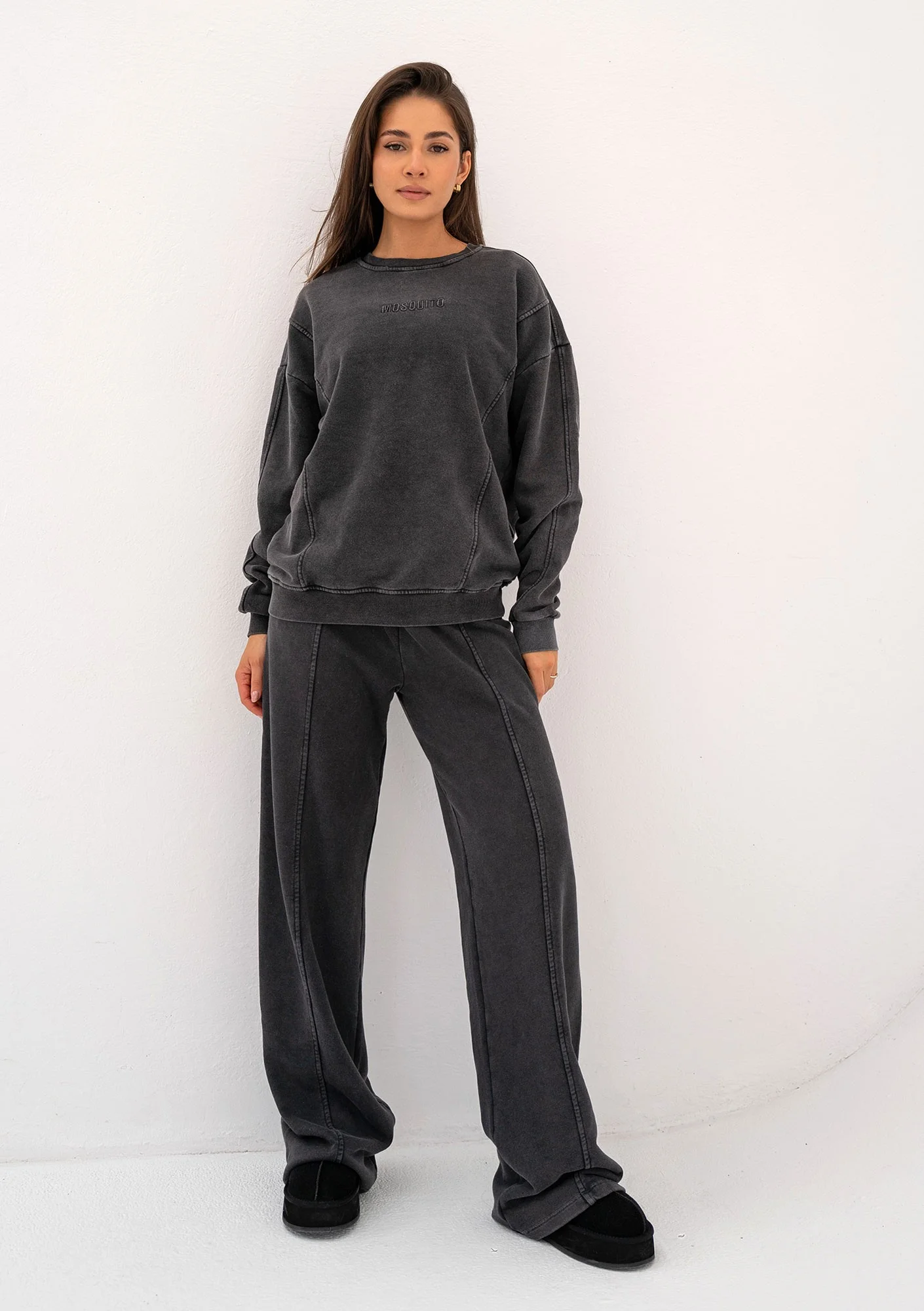 Starannie poprowadzone lamówki sprawiają, że czarna bluza damska Shadi o prostym kroju nabiera wyjątkowego stylu i doskonale układa się na sylwetce. Dodaj do zakupu dedykowane spodnie dresowe Shadi lub Bise. Modny komplet dresowy będzie gotową, szybką stylizacją na wyjazd, popołudniowe spotkanie, do pracy.