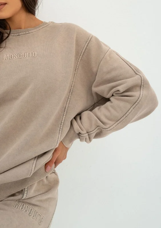 Beżowa bluza bawełniana vintage dla miłośniczek klasycznych fasonów. Wygodna i wszechstronna, pozbawiona kaptura. Dopełniona wyszywanym logiem marki.